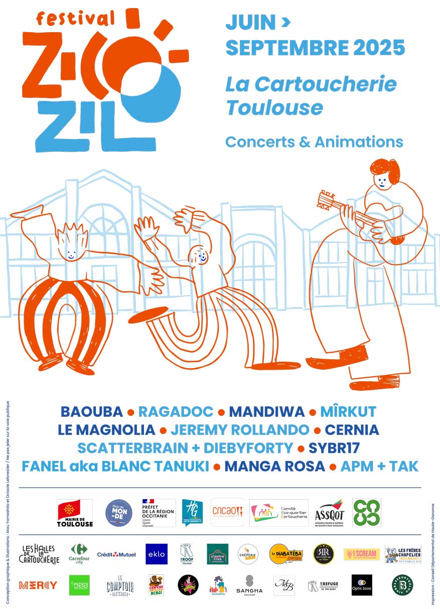 dans le cadre de la 4e édition du Festival Zicozilo, des concerts et animations auront lieu dans le quartier de la Cartoucherie à Toulouse, du 15 Juin au 20 Septembre.