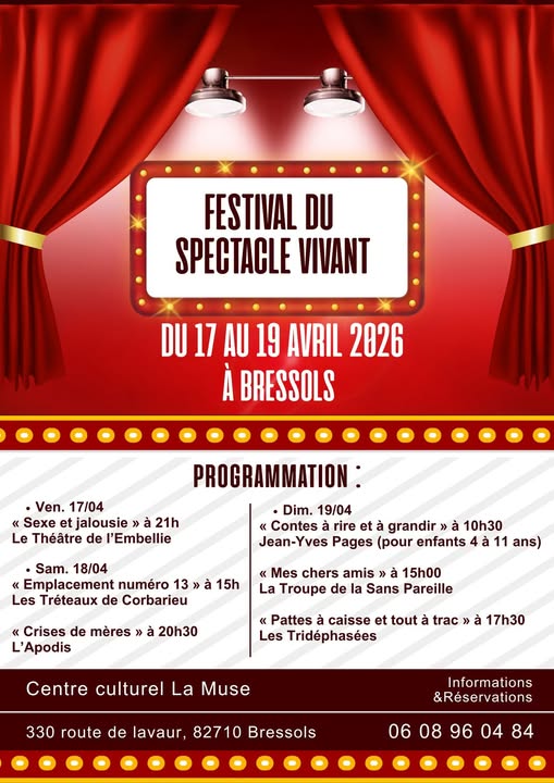 Du 17 au 19 avril 2026, plongez dans l’univers captivant du théâtre et des arts de la scène au Centre Culturel La Muse !