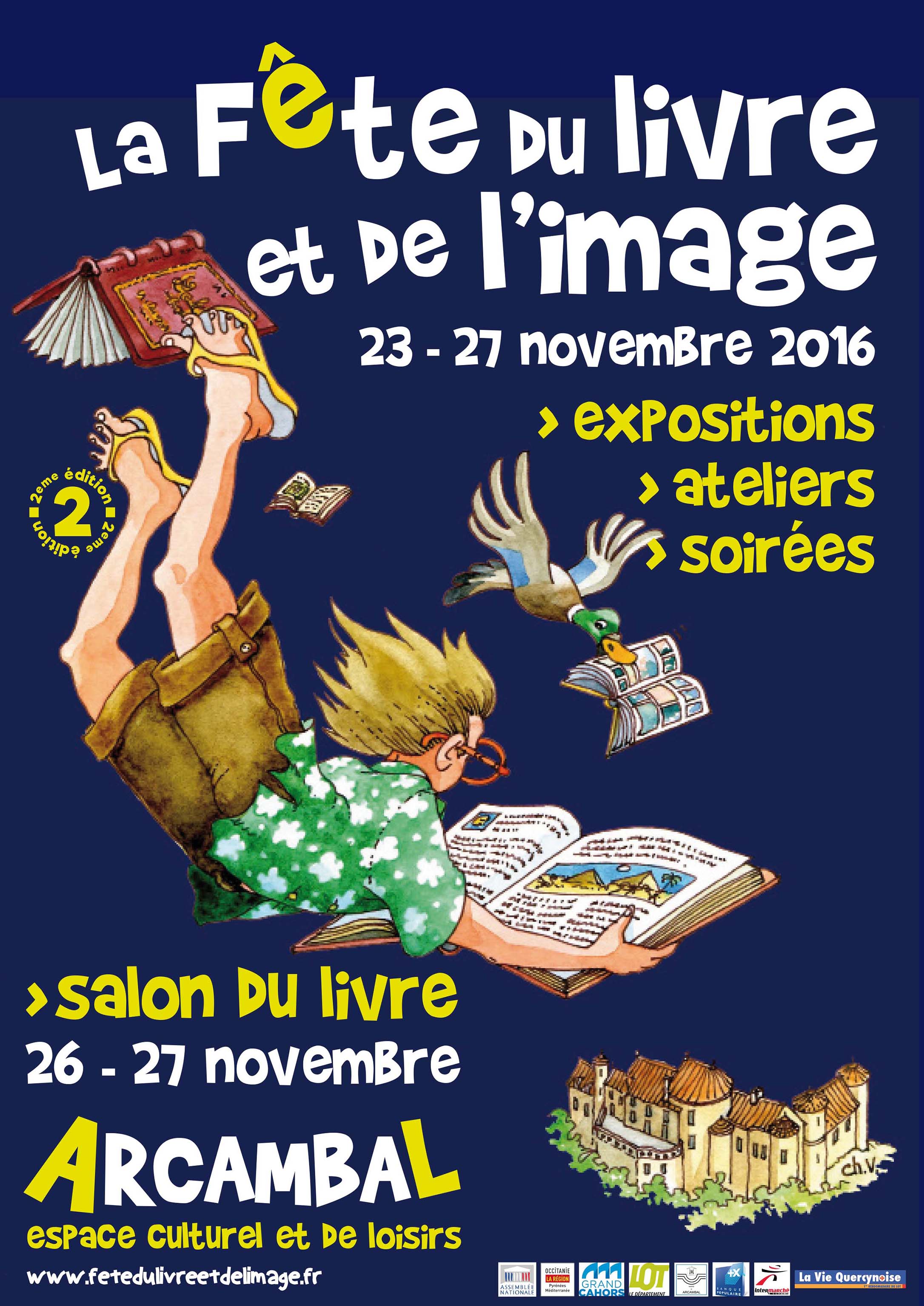 Arcambal retrouvera, pour la seconde année, ce foisonnement de la filière du livre autour de la création littéraire associant textes et images. Exposition de planches originales, de livres d’artistes et de travaux de créations scolaires. 3 jours d’ateliers et d’animations. Un concours ouverts aux scolaires 1er degré sur le thème du petit patrimoine. Un week-end dédié à un salon du livre où sont invités des auteurs, illustrateurs et photographes, des éditeurs, des libraires, des institutions culturelles.