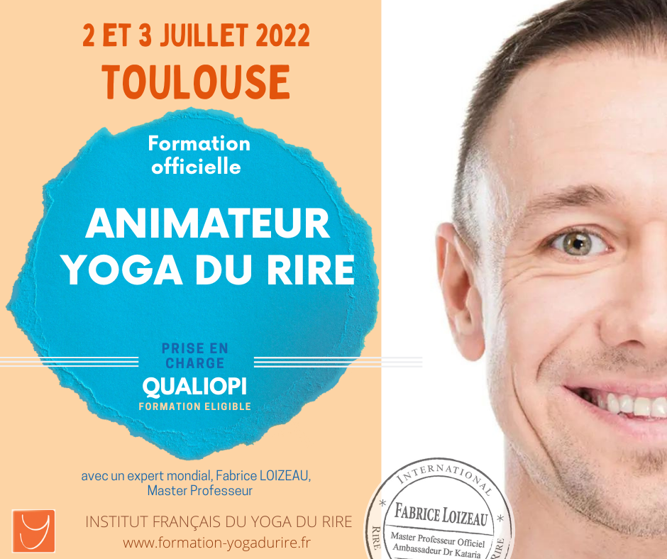 Ouvert à tous - A titre personnel ou professionnel 2 & 3 juillet 2022 TOULOUSE Découvrez des outils pour réveiller la joie de vivre et sa vitalité. Vous apprendrez comment ajouter plus de rire et de positif dans sa vie. En 2 jours, les participants repartent avec des bases solides pour devenir autonome et animer des séances de qualité auprès de différents publics (jeunes, seniors, adultes, entreprises, écoles, etc.) avec Fabrice Loizeau, Master professeur-formateur officiel et joyeux directeur de l’Institut Français du yoga du rire. Obtention du Certificat d’animateur de yoga du rire agréé permettant d’exercer légalement le yoga du rire (et d’ouvrir un club de rire).