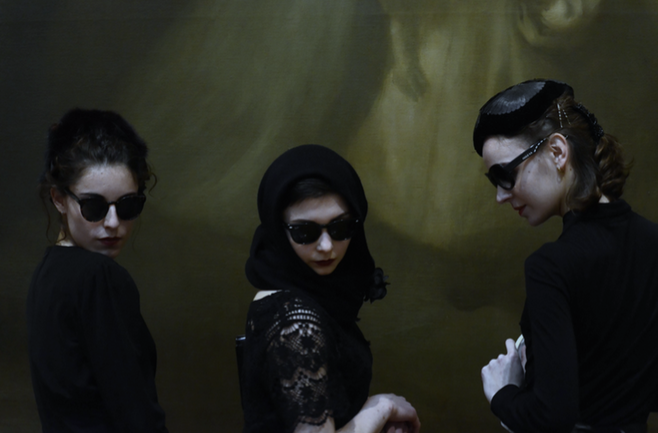 Ce trio retrace une cérémonie funéraire, au premier abord conventionnel. Un vieux tourne disque, une odeur de parfum ancien, trois femmes cachées derrière des lunettes noires. Chaque détails est soigné pour nous font revivre une scène d’enterrement des années 30. “Georges” traite de la perte, l’absence, du deuil. Comment vivre dans la perte, dans le souvenirs de l’autre, la nostalgie non pas dans son aspect dramatique mais plutôt avec humour et ironie ?