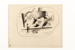 Georges Braque, nature morte cubiste, vers 1960, fusain, photographie Gilles Lefrancq © Musée-bibliothèque Pierre André Benoit