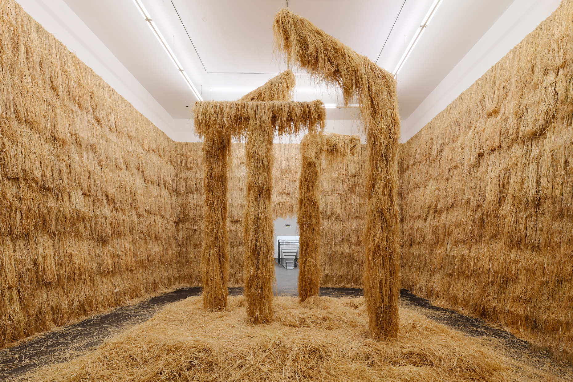 Architecte contestataire qui n’a construit aucun bâtiment, il opte dès le départ pour le vocabulaire de l’art contemporain – installations, vidéos, performances… - pour mener une réflexion critique sur la fonctionnalité et la standardisation de l’habitat moderne. Accompagné par le cliquetis métallique d’un tunnel sonore, l’odeur du raphia qui enveloppe l’espace du sol au plafond, le bruissement d’une forêt de papier, le visiteur chemine parmi quelques-unes de ses œuvres les plus emblématiques, en se demandant quelle sorte d’habitat peut bien occuper cet homme habillé d’un manteau-chaise. La réponse est à l’étage du Crac, dans une visite filmée de sa maison – car il en existe une – sur l’île d’Elbe : une architecture ouverte à la nature et aux éléments, où le bonheur domestique se loge dans un courant d’air, un rai de lumière, des branches qui s’invitent dans la maison. MR