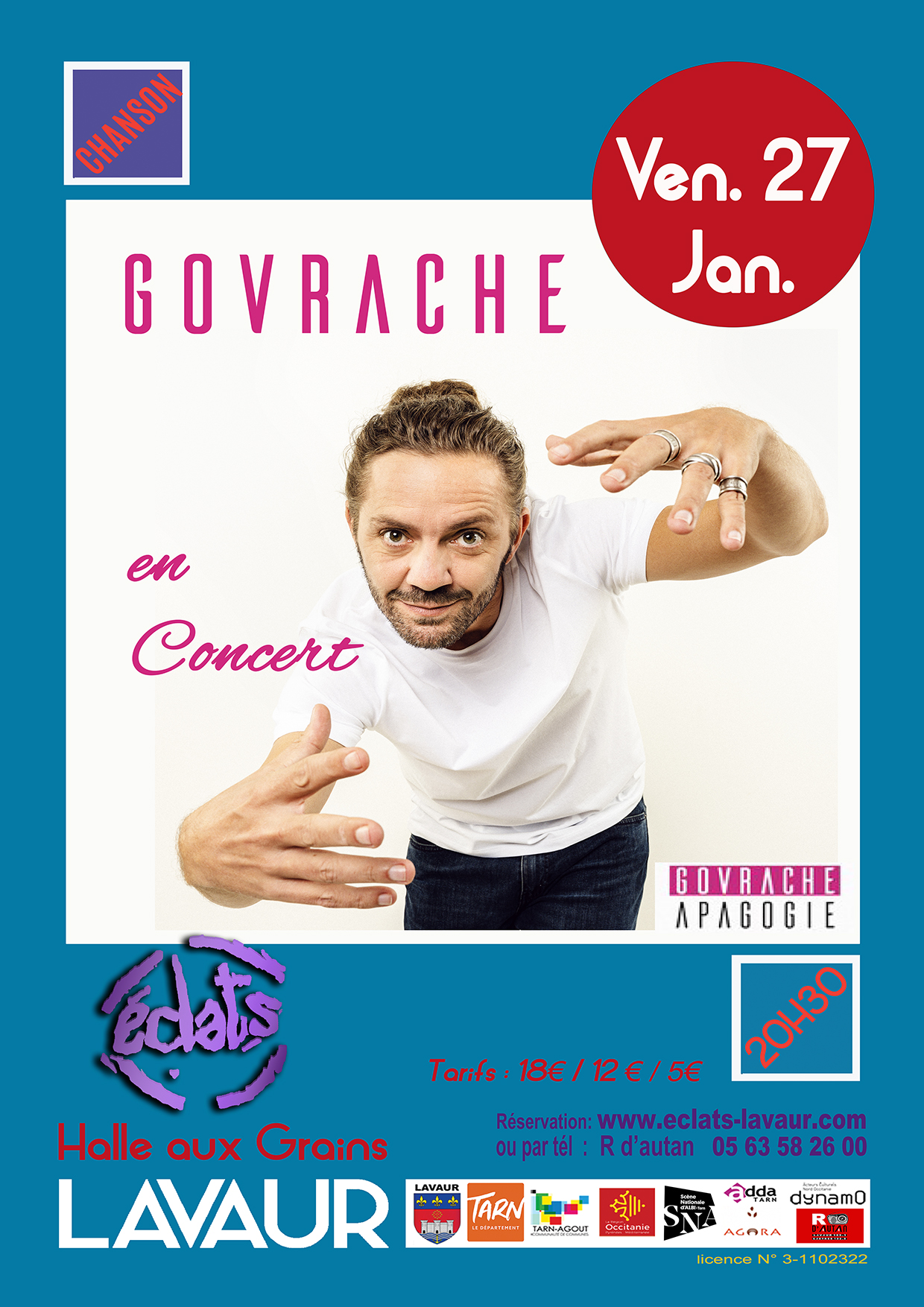 Accompagné par un contrebassiste, un pianiste et un beatmaker, Govrache propose un spectacle aussi musical que poétique, oscillant entre slam et hip-hop. Il est sur scène ce qu’il est dans la vie : un indigné, un insoumis. Qu’il slame le beau ou qu’il scande l’absurde, qu’il utilise l’uppercut ou la caresse, Govrache sait toucher notre âme et remuer nos tripes