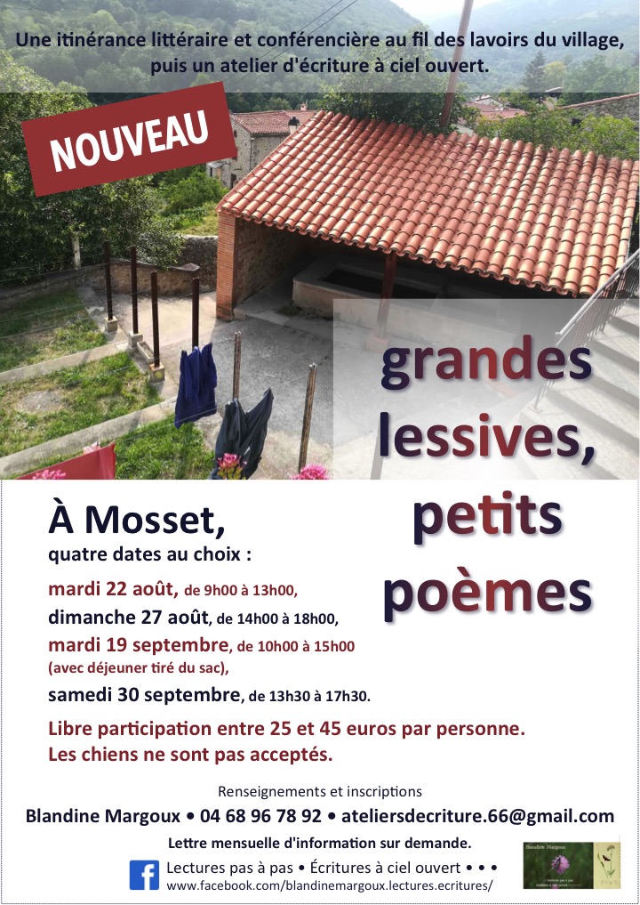 Blandine Margoux, 04 68 96 78 92, ateliersdecriture.66@gmail.com.