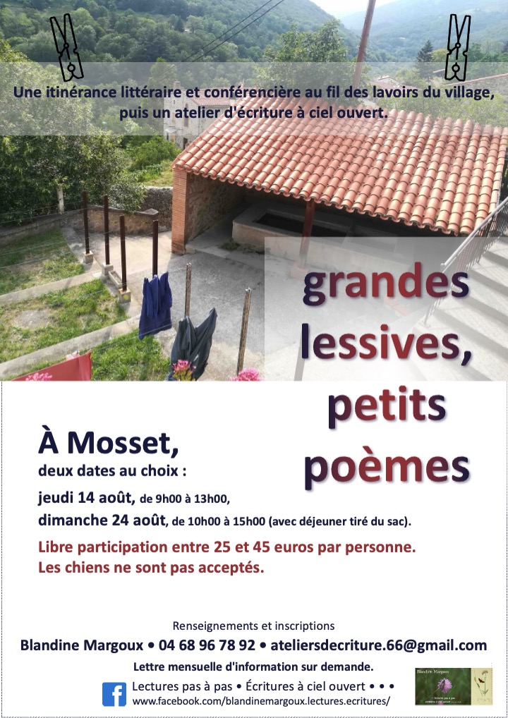 Blandine Margoux, 04 68 96 78 92, ateliersdecriture.66@gmail.com.