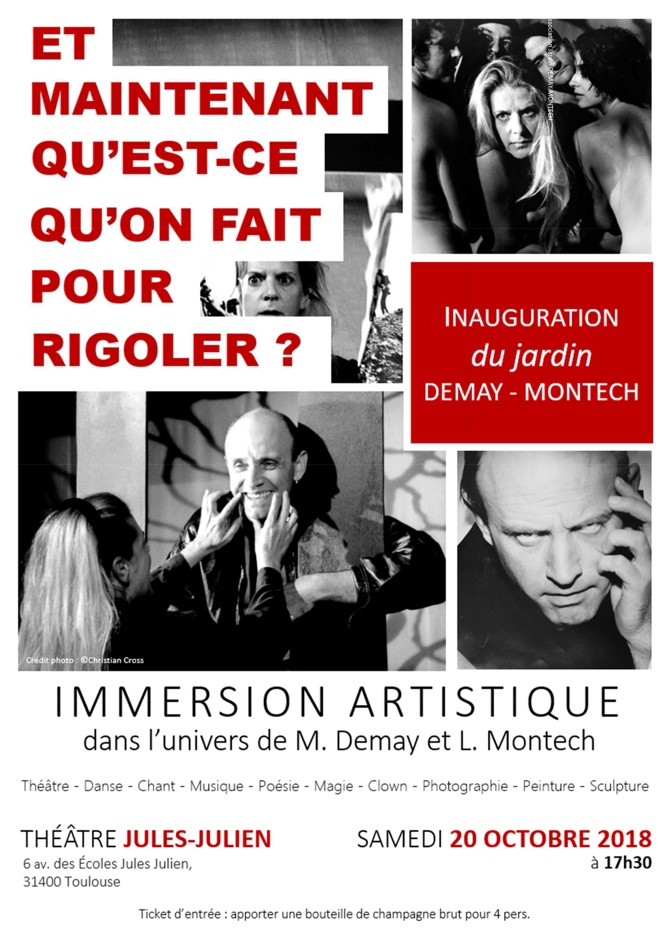 Une cinquantaine d’artistes professionnels et amateurs se réuniront samedi 20 octobre à 17h30 devant le Théâtre Jules-Julien pour célébrer Monique Demay et Luc Montech, Directeur et fondateur du Théâtre Jules-Julien jusqu’en 2009, dans le jardin qui désormais portera leurs deux noms : le "Jardin Monique Demay et Luc Montech".