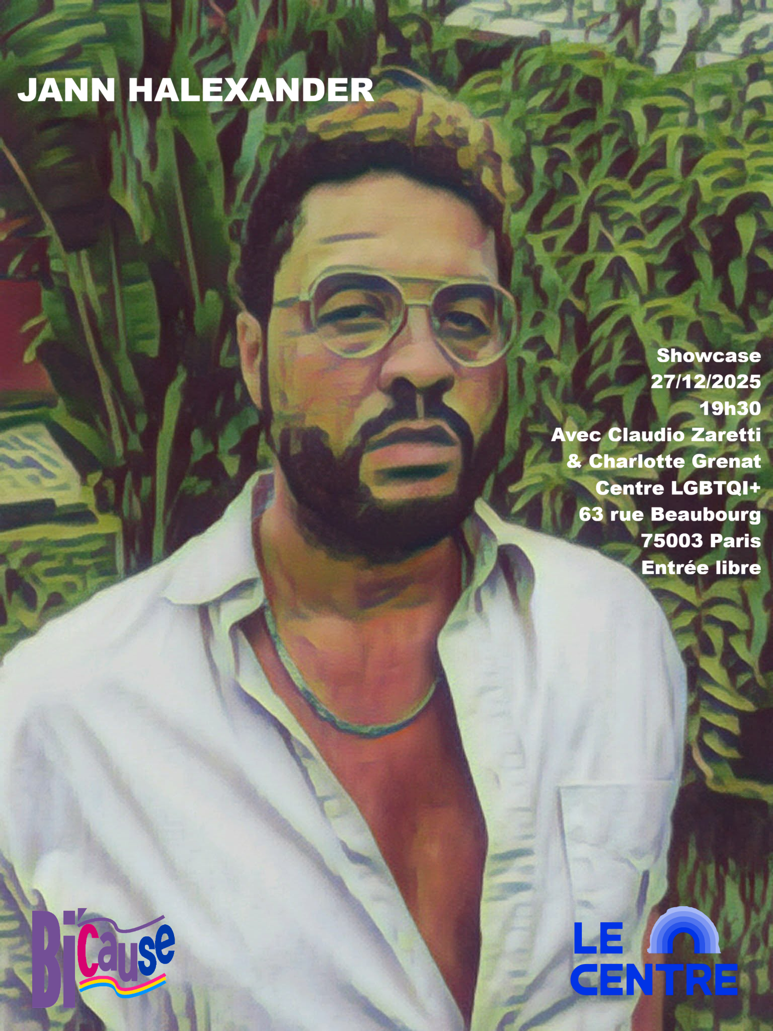 En ouverture de la soirée Karaoké organisée par l’association Bi’Cause et le Centre LGBTQI+ le 27 décembre, le chanteur Jann Halexander donnera un concert d’une vingtaine de minutes, accompagné à la guitare par Claudio Zaretti et avec en invitée Charlotte Grenat, à 19h30.