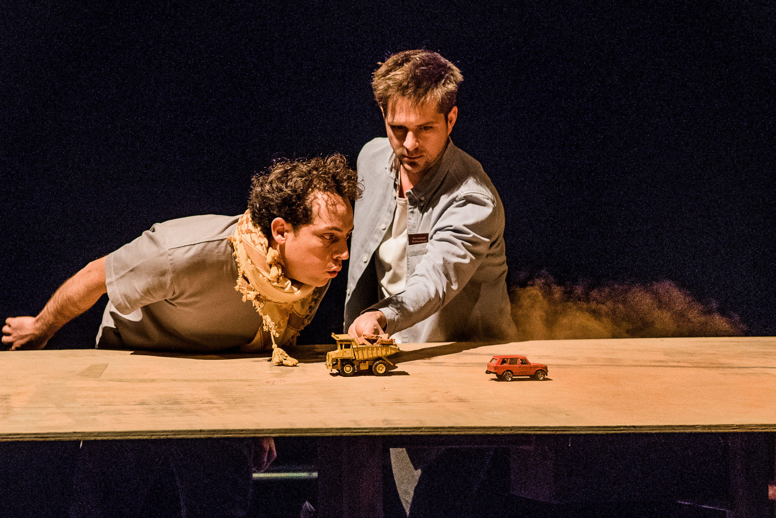 Joueurs, c’est une histoire d’utopie mue par un désir de révolution. Après Frères (accueilli en 2018) qui narrait la guerre d’Espagne, puis Camarades (accueilli en 2020) qui abordait le féminisme dans les années 1970, découvrez Joueurs (création 2021). Ce nouvel acte se joue aujourd’hui à travers l’histoire de deux amis. Sur les traces de sa famille, Youssef part en Palestine pour rejouer une dernière partie d’échecs avec son grand-père. Accompagné de son meilleur ami Thomas, il vivra un voyage auquel il ne s’attendait pas. Plongés dans un échiquier géopolitique qui les dépasse, les deux amis empruntent des chemins différents, entre activisme artistique et politique. Joueurs est une histoire d’amitié mais aussi et surtout un passionnant portrait de la Palestine d’aujourd’hui. Sur scène, toutes sortes d’objets — tant quotidiens que surprenants, porteurs de mémoire et de métamorphoses — participent à ce récit. À la croisée de l’intime et du documentaire, Joueurs nous parle d’engagement, d’utopie, d’héritage… Une série de portraits nous transportent en Israël et dans les territoires occupés. Thomas et Youssef construisent leur histoire avec du bois, des briques, des théières, avec ce qu’ils ont sous la main. La question palestinienne est une inlassable histoire de construction et de destruction. Il restera des fragments, des éclats, de la poussière et peut-être une utopie.