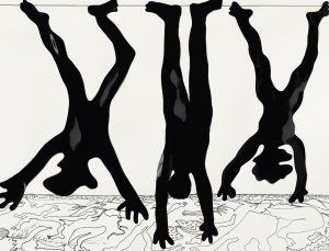 Kiki Kogelnik, « Untitled (Hangings) », c. 1970. Feuille de vinyle et encre de Chine sur papier 58 x 74 cm. © 1970 Kiki Kogelnik Foundation. Tous droits réservés.