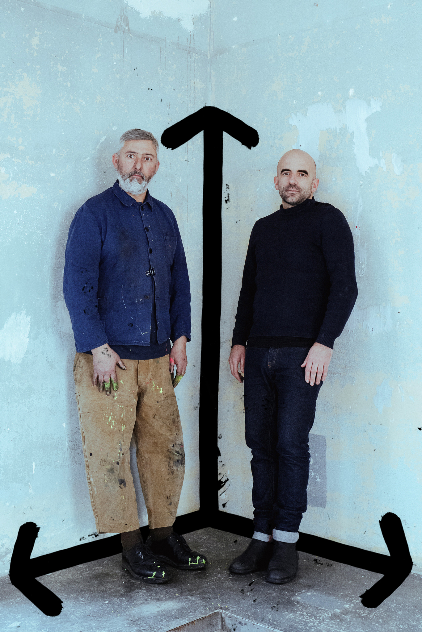 L’Asymétrie des baratins est une conférence dessinée, née de la rencontre de Nicola Delon, architecte cofondateur d’Encore Heureux, et de Benoît Bonnemaison-Fitte, dit Bonnefrite, artiste peintre et affichiste. À la croisée du diaporama et de la performance, cette conférence questionne les conditions d’habitabilité de l’espèce humaine sur Terre. En direct, la peinture et le dessin traduisent le trouble sur un chemin traversé par les enjeux politiques et les intuitions des alternatives collectives. Elle est une tentative pour dire et fabriquer un monde plus juste, plus sobre, plus habitable. Aux origines du projet, l’exposition Énergies Désespoirs créée à Paris en mai 2021 donne la matière première de cette fertile association. Pour cette exposition, une équipe pluridisciplinaire s’est constituée, associant la démarche généreuse et généraliste des architectes d’Encore Heureux, la force des dessins de Benoît Bonnemaison-Fitte, et l’approche des chercheurs- chercheuses en anthropocène de l’École urbaine de Lyon, menée par le géographe Michel Lussault et l’urbaniste Valérie Disdier. Cette grande exposition séparait alors le désespoir des périls vertigineux de la crise écologique et l’énergie des espoirs magnifiques et brillants portés par celles et ceux qui décident de s’engager pour un monde résolument habitable. L’Asymétrie des baratins ajoute une voix sensible au contenu scientifique et objectif de l’exposition. Elle la prolonge d’une subjectivité en ébullition, dans un dialogue entre les mots et les images de deux âmes frères, deux grands bavards, qui tissent sur scène un récit intime, pour partager leurs doutes et leurs colères, leurs convictions et leurs espoirs.