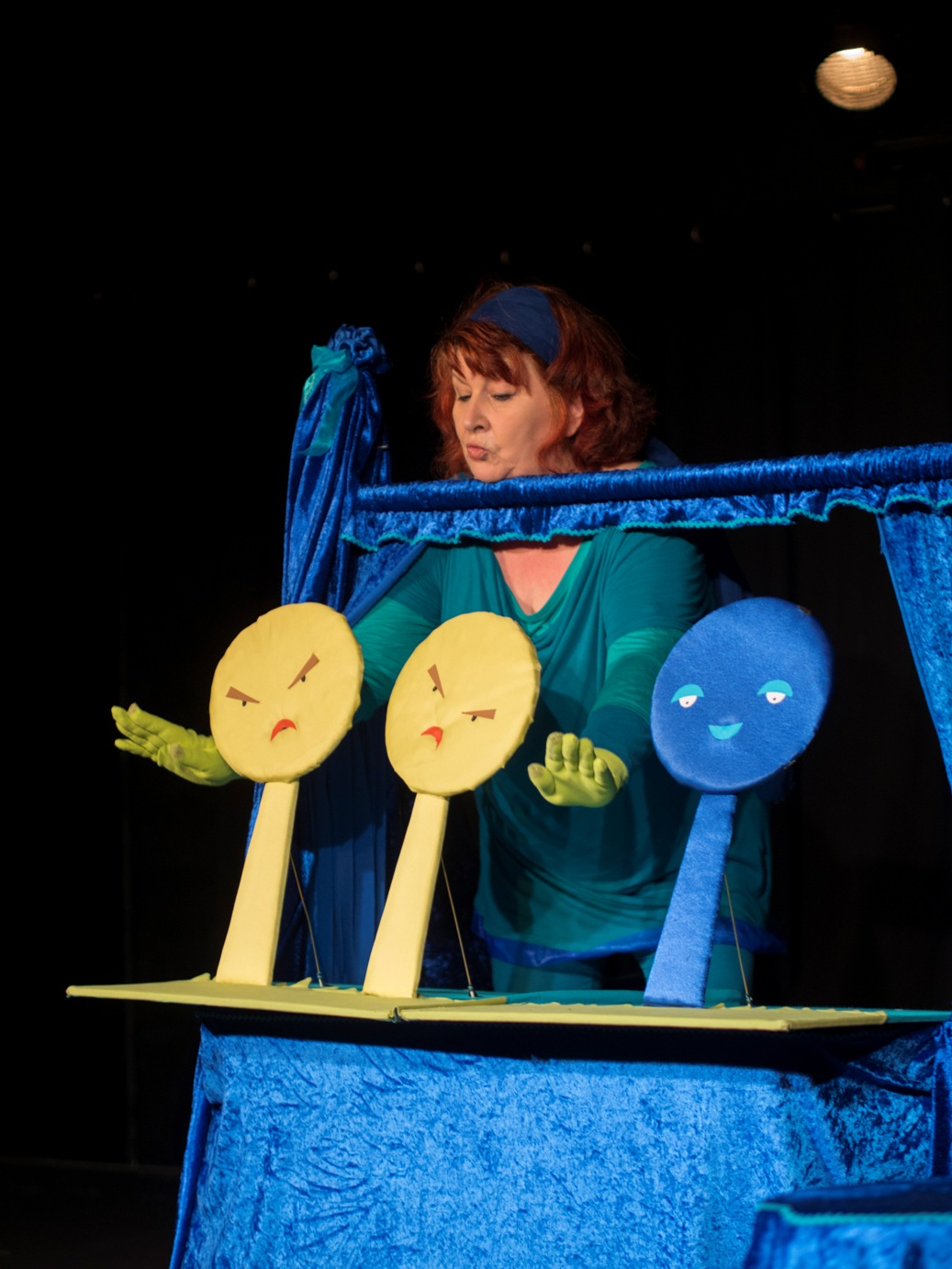est un spectacle qui se présente comme un grand livre d’images. Les pages, faites de tissus colorés et moelleux, s’animent sous les mains de la comédienne-conteuse :