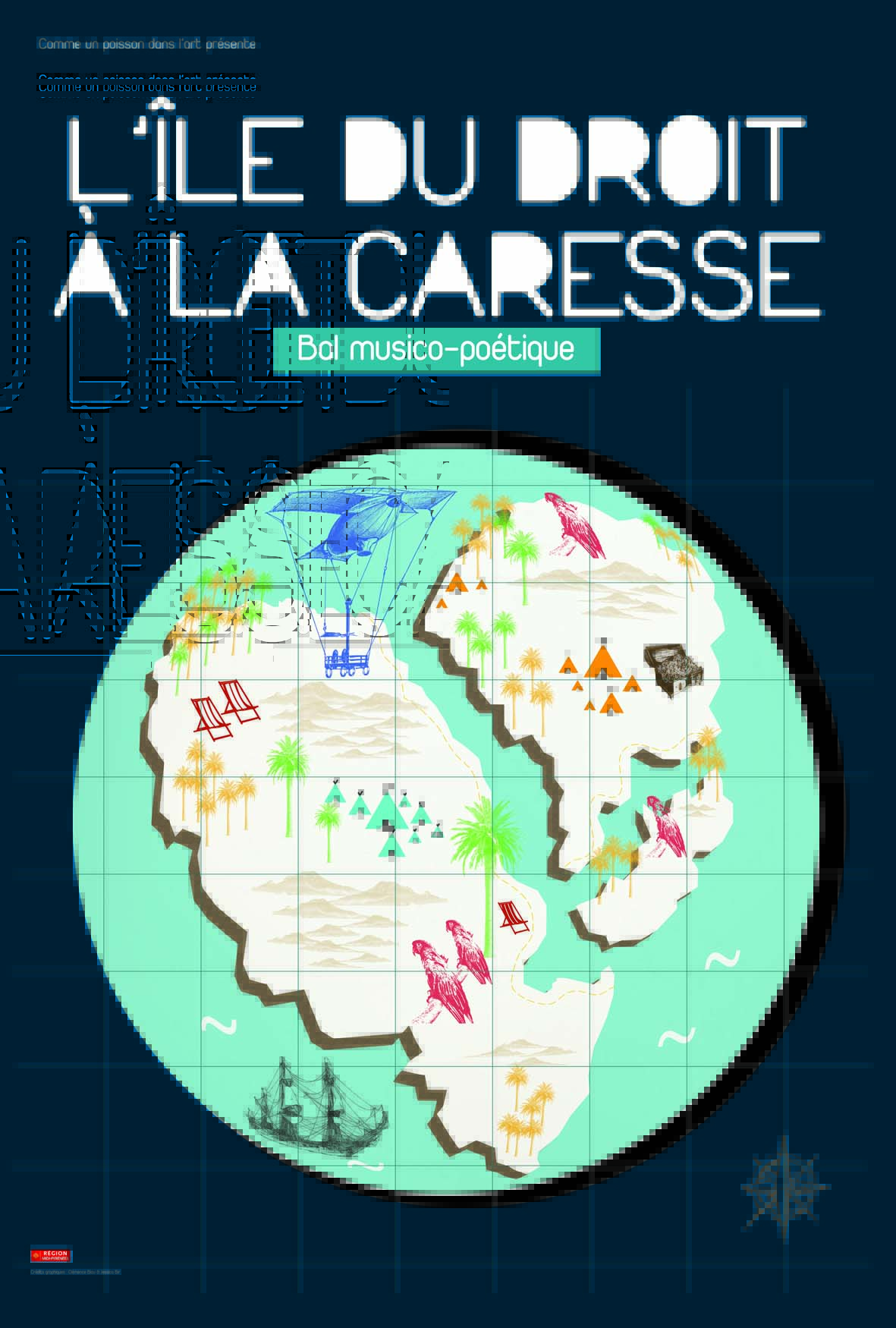 Comme un poisson dans l’art, dans le cadre du festival Dis-moi, dix mots, présente le spectacle L’île du droit à la caresse : le dimanche 20 mars à 14h30 à la DRAC Languedoc-Roussillon-Midi- Pyrénées. Ce spectacle musicopoétique pour tous, àpartir de 7 ans, propose une adaptation originale du texte de Daniel Mermet.