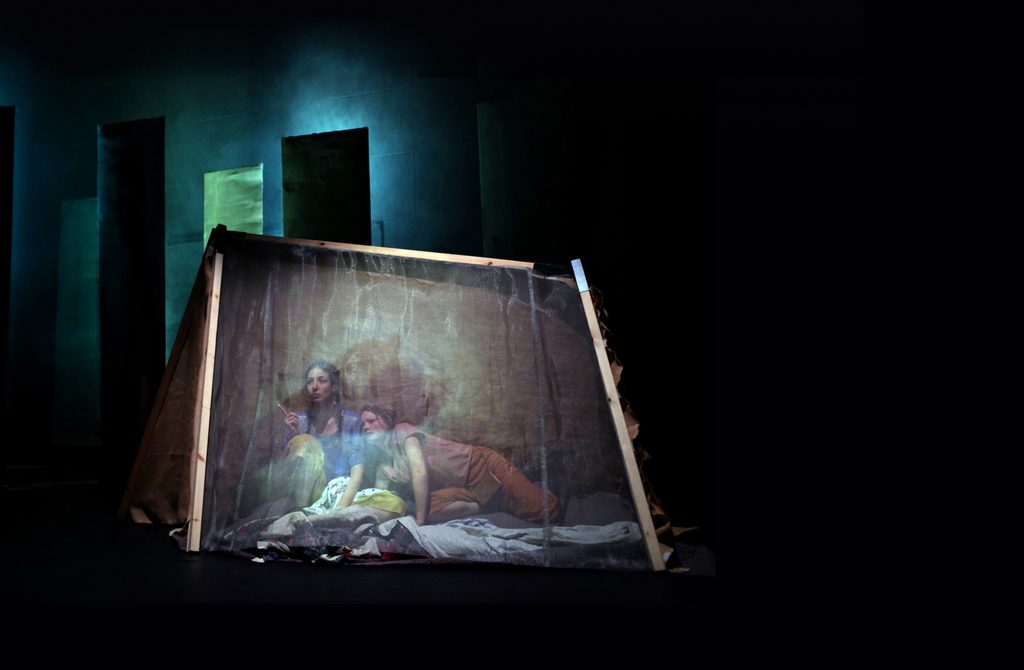 Deux enfants ont la permission de passer une nuit dans le jardin, sous la tente. Mais dormir n’est pas facile. D’abord, la nuit est très noire, et puis il y a de drôles de bruits. Et si un monstre était dehors ? Les enfants ont peur. Et comment faire pour que la peur s’éloigne ? La transformer en une formidable rigolmarrade ! Une fantaisie nocturne pour deux comédiennes, un musicien, un vidéaste et quelques monstres.