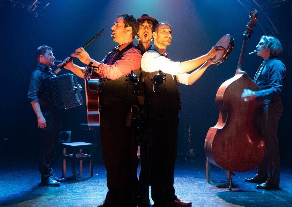 En revisitant la mélodie si célèbre de La Truite de Schubert, les cinq musiciens du groupe Accordzéâm (guitare, violon, accordéon, contrebasse et percussions) proposent avec un talent fou une cascade de styles musicaux, du tango au jazz, du rock au rap en passant par les polyphonies corses ! La mise en scène du facétieux Éric Bouvron va au-delà de la parodie et nous plonge dans un torrent où l’âme du classique rejoint l’instinct du corps.