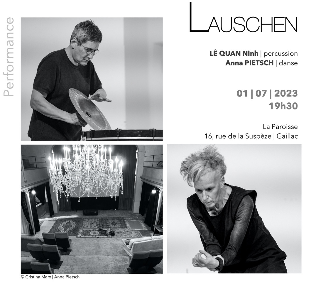 Le verbe (allemand) LAUSCHEN, traduisible par la notion d’être tout ouïe, comprend l’écoute comme un état plutôt qu’un acte. Un état de réceptivité qui emplit et engage le corps dans son ensemble. L’approche de la MasterClass, dédiée aux musicien·nes et danseur·ses sensibles à ce propos, abordera ce principe par des moyens délibérément simples et précis, de sorte à rendre l’accès à un état dynamique de présence à la fois immédiat, tangible et efficient. La pratique consistera en l’exploration individuelle et collective au travers d’exercices favorisant le silence, suivie d’une mise en jeu incluant l’espace et la relation dans un contexte de composition instantanée.
