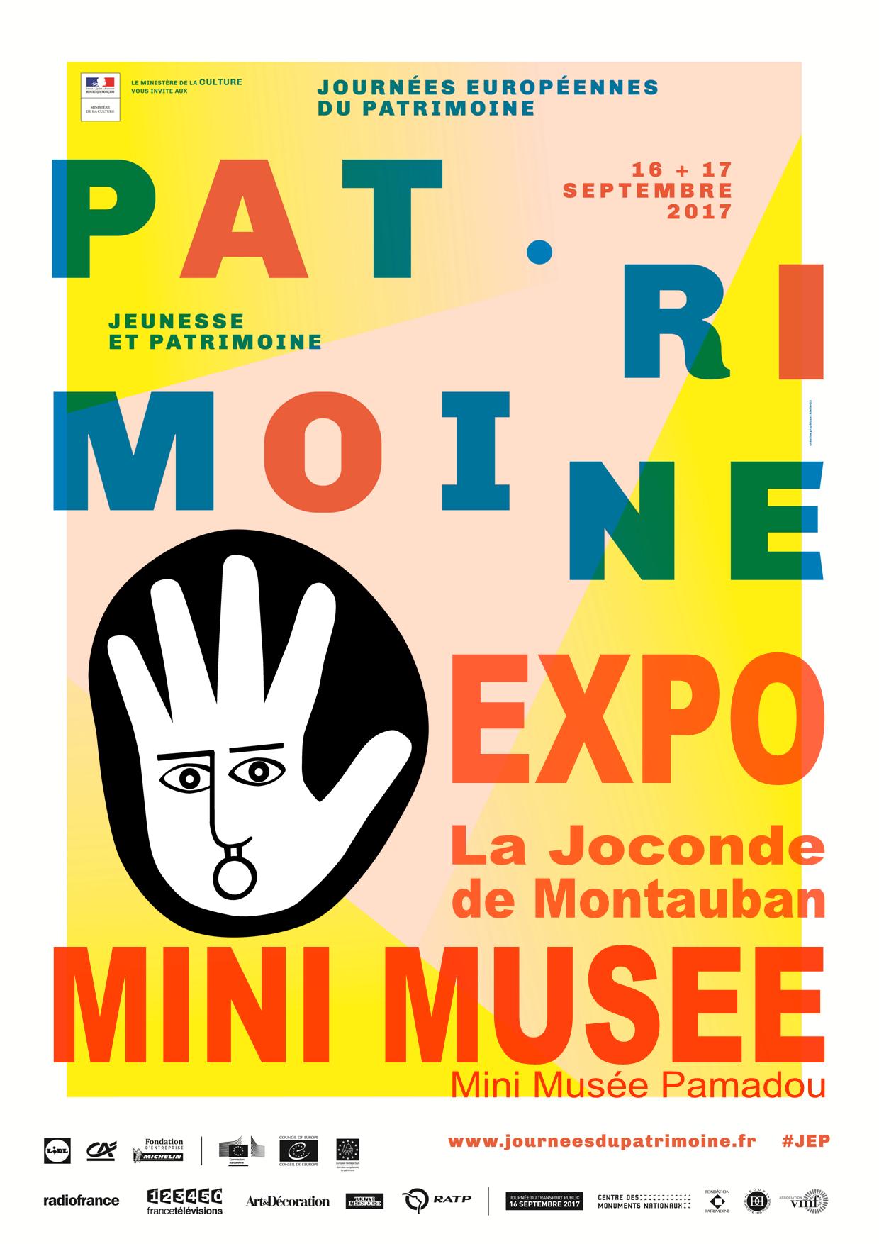 Dans le cadre des Journées Européennes du Patrimoine 2017, en relation avec le Ministère de la Culture le Mini Musée Pamadou a le plaisir de vous convier à une exposition autour de la Joconde. "La Joconde de Montauban" est une exposition, pour les jeunes (ou ceux qui n’étaient pas au courant), consacrée à ce fleuron de notre patrimoine artistique qui fut caché à Montauban afin d’échapper au rapt des Nazis lors de la seconde guerre mondiale. La Joconde fut cachée à Montauban par le conservateur du Louvre de l’époque dans sa chambre qui se situe à 100 mètres du lieu où se trouve le "Mini Musée" de Montauban( 22, rue de la Comédie 82000 Montauban).