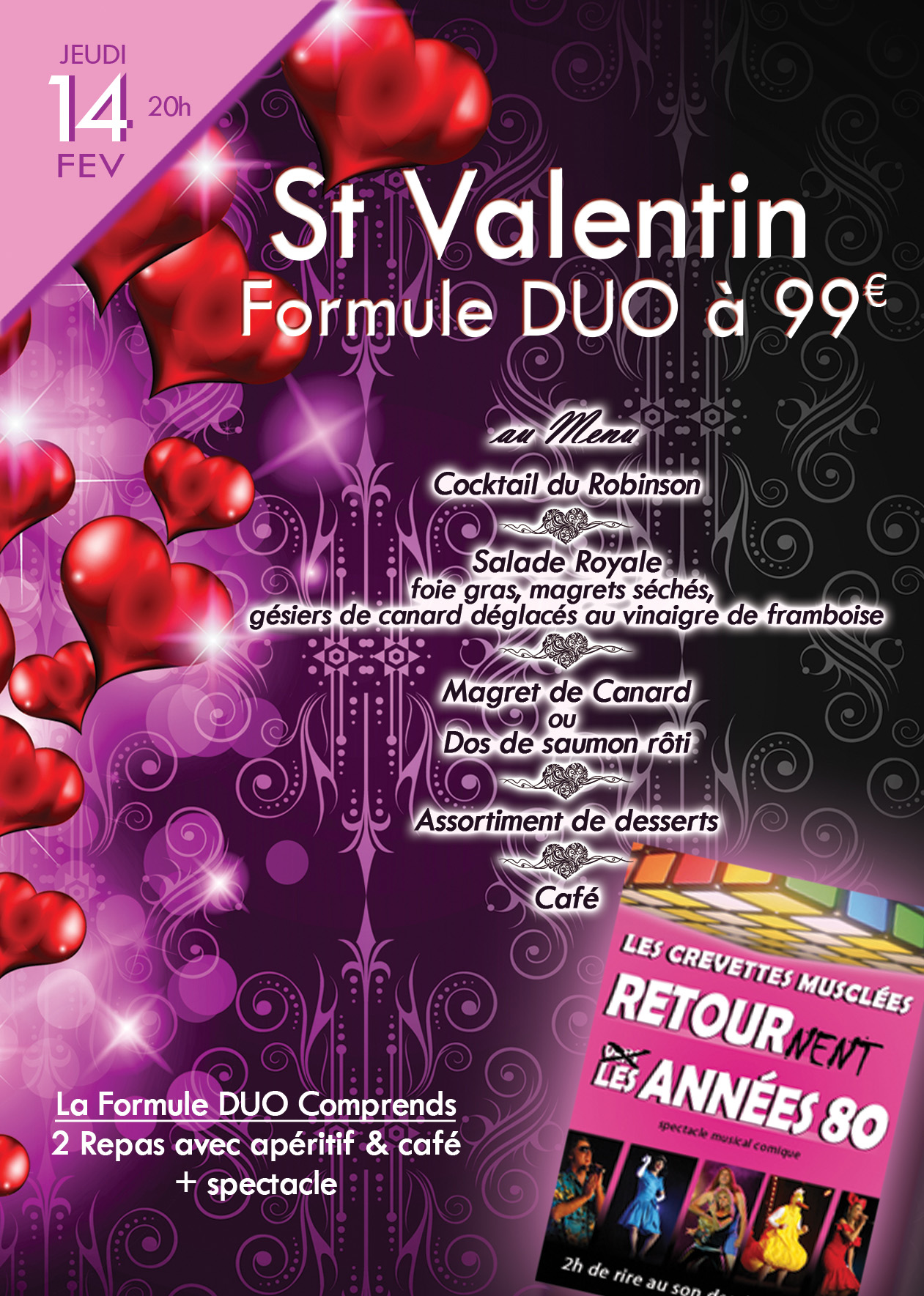 La Saint-Valentin se fête au Robinson avec un des cinq spectacles phares de la troupe du cabaret-restaurant : "Les Crevettes Musclées retournent les années 80".