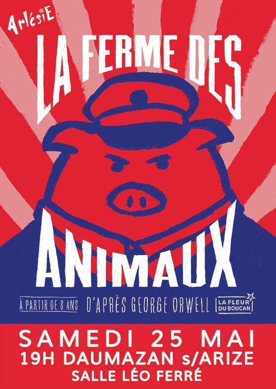De l’utopie à la dictature, comment les processus de domination se mettent-ils en place ? Un narrateur, une narratrice, une assemblée d’objets, des personnages qui s’affrontent et une histoire qui sonne comme une mise en garde : une révolution menée par des gens ivres de pouvoir ne peut aboutir qu’à un changement de maître. La Cie La Fleur du Boucan revisite avec malice et désinvolture le célèbre roman d’Orwell.