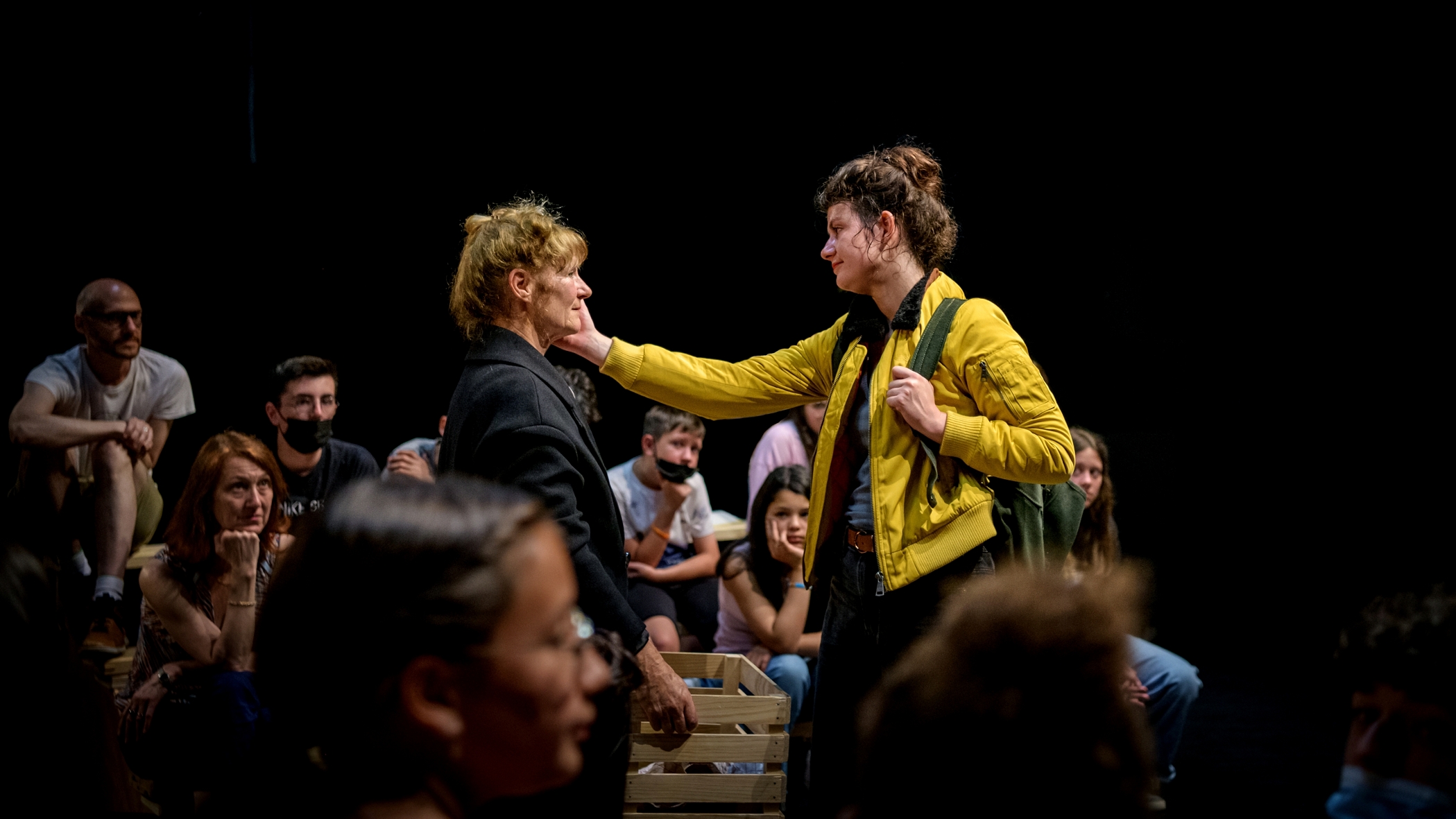 C’est quoi, ça, avoir la tête ailleurs ? Et si l’imagination était certes une affaire de tempérament (aimer rêver, s’inventer des fictions) mais aussi une affaire de situation (quand imagine-t-on et pourquoi ?) ? Voltairine, 70 ans, est à un tournant de sa vie. Hier, la Tour 53 a été détruite. Aujourd’hui, sur les ruines de la Tour, elle vient dire adieu à ses souvenirs d’enfance. Mais quelqu’une est venue au rendez-vous alors qu’elle n’y était pas conviée… C’est sa mère, qui lui apparaît sous ses traits de jeune femme, à l’époque où elle, Voltairine, était petite fille. S’engage alors un ultime dialogue entre une mère, dont les pieds ont toujours été sur terre, et une fille, dont la tête est encore ailleurs, dans les nuages de l’imaginaire. A moins que ce ne soit l’inverse ? La tête ailleurs c’est une histoire sur les possibles qu’apportent le jeu et l’imagination dans une époque troublée qui, elle, ne parvient plus à (se) rêver. Dans un dispositif tri-frontal, le public vit le temps de la représentation au plus près des comédiennes, au plus proche de leurs rêves… « Petit, on m’a toujours fait remarquer, de manière négative, que je rêvais, que j’étais dans les nuages, qu’il fallait redescendre sur terre. Pendant très longtemps je n’ai pas compris pourquoi on me disait cela, et je dois avouer que je ne comprends toujours pas. »