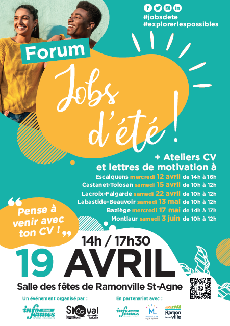 Le mercredi 19 avril, de 14h à 17h30 se tiendra le traditionnel Forum Jobs d’été du Sicoval à la Salle des fêtes de Ramonville Saint-Agne.