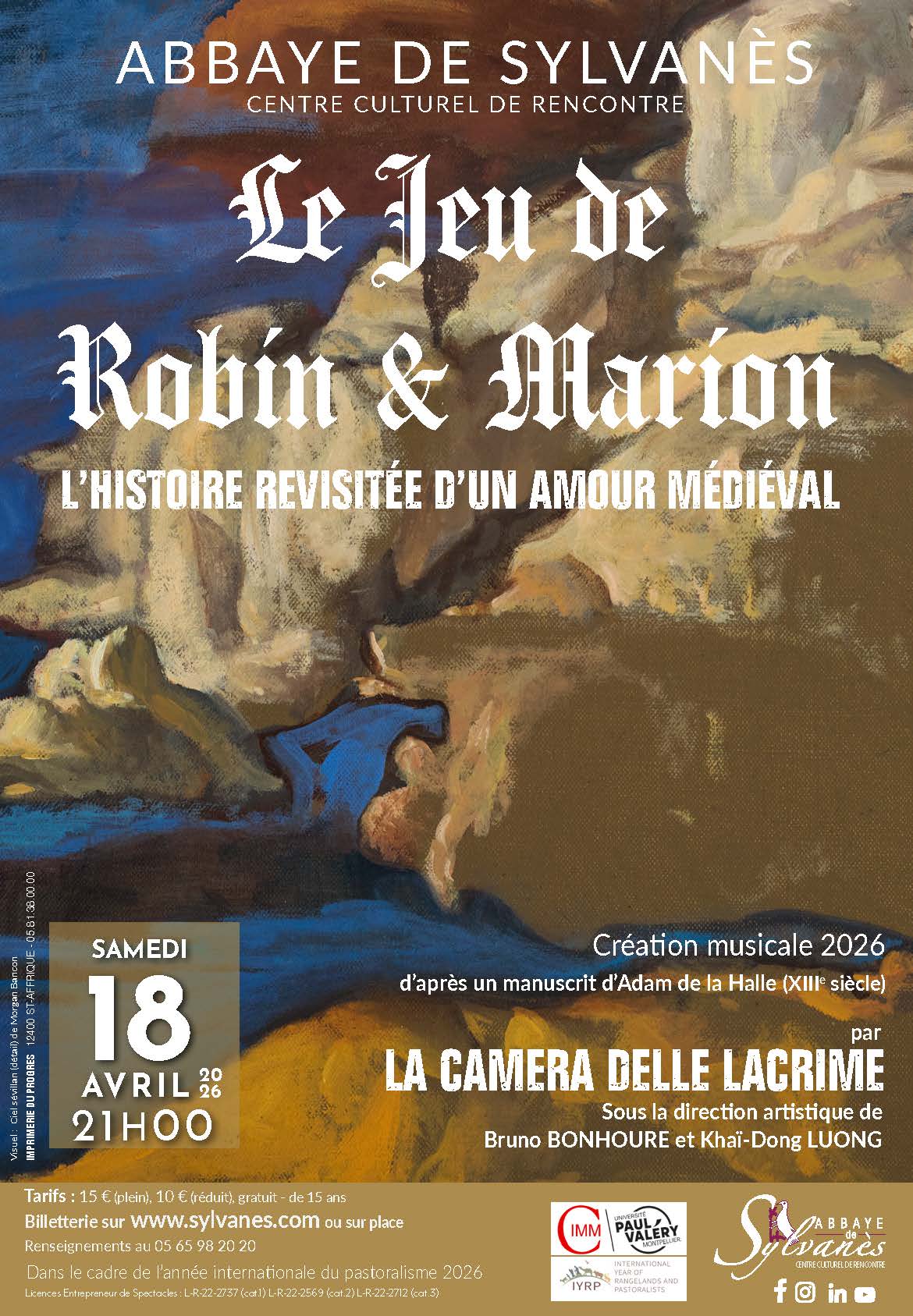 Marion, jeune bergère, rêve en chantant à son ami Robin. Arrive alors le chevalier Aubert qui, à défaut d’arriver à la séduire, décide de l’enlever. Heureusement, Marion peut compter sur le soutien de ses ami(e)s... Avec cette nouvelle création, La Camera delle Lacrime vous invite à une exploration sensible et ludique de l’amour, du jeu et du quotidien au Moyen Âge dans une langue rendue accessible par une adaptation du texte ancien dans un français moderne.