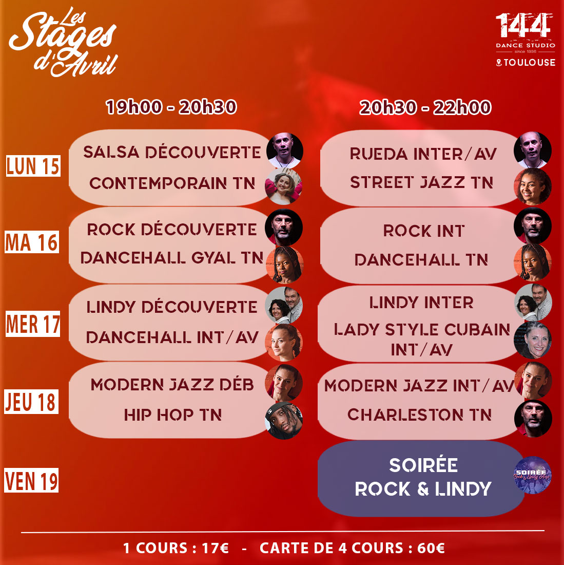 Faites vous plaisir durant les vacances d’avril ! Les cours réguliers sont fermés, mais le 144 a pensé à tous ceux qui souhaitent continuer de danser durant les vacances.