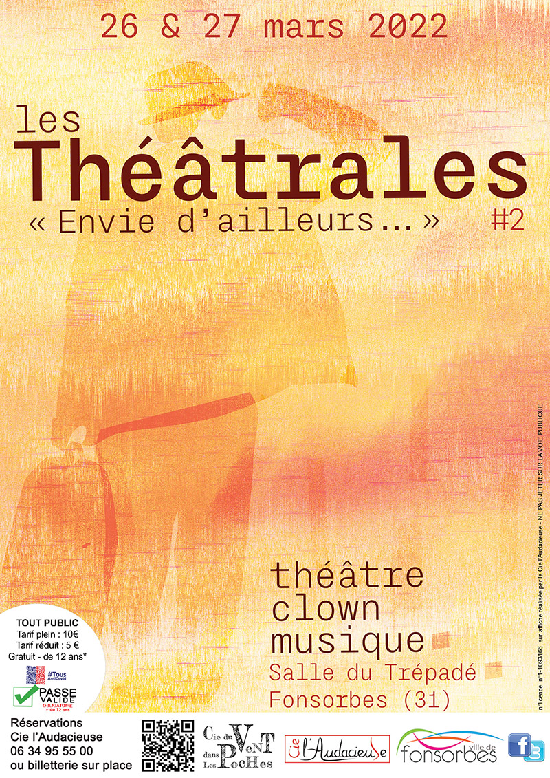 🎭 À l’occasion de la Journée Mondiale du Théâtre, la compagnie l’Audacieuse et La Cie du Vent dans les Poches mettent le théâtre à l’honneur dans la commune de Fonsorbes ! Le thème « Envie d’ailleurs... Partir en Voyage » sera le fil rouge de tout le week-end, durant lequel seront proposés plusieurs événements en salle et hors les murs.