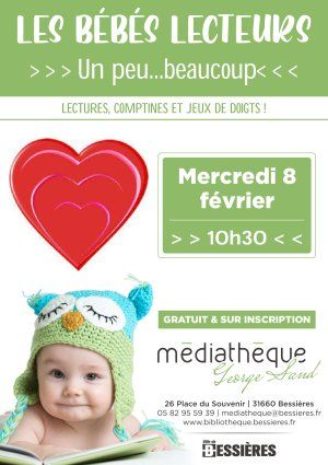 Un atelier tout en douceur pour les bébés - et leurs parents - pour les familiariser avec les livres et la lecture ! Et pour février, le thème du mois sera l’amour...un peu, beaucoup !! Sur inscription.
