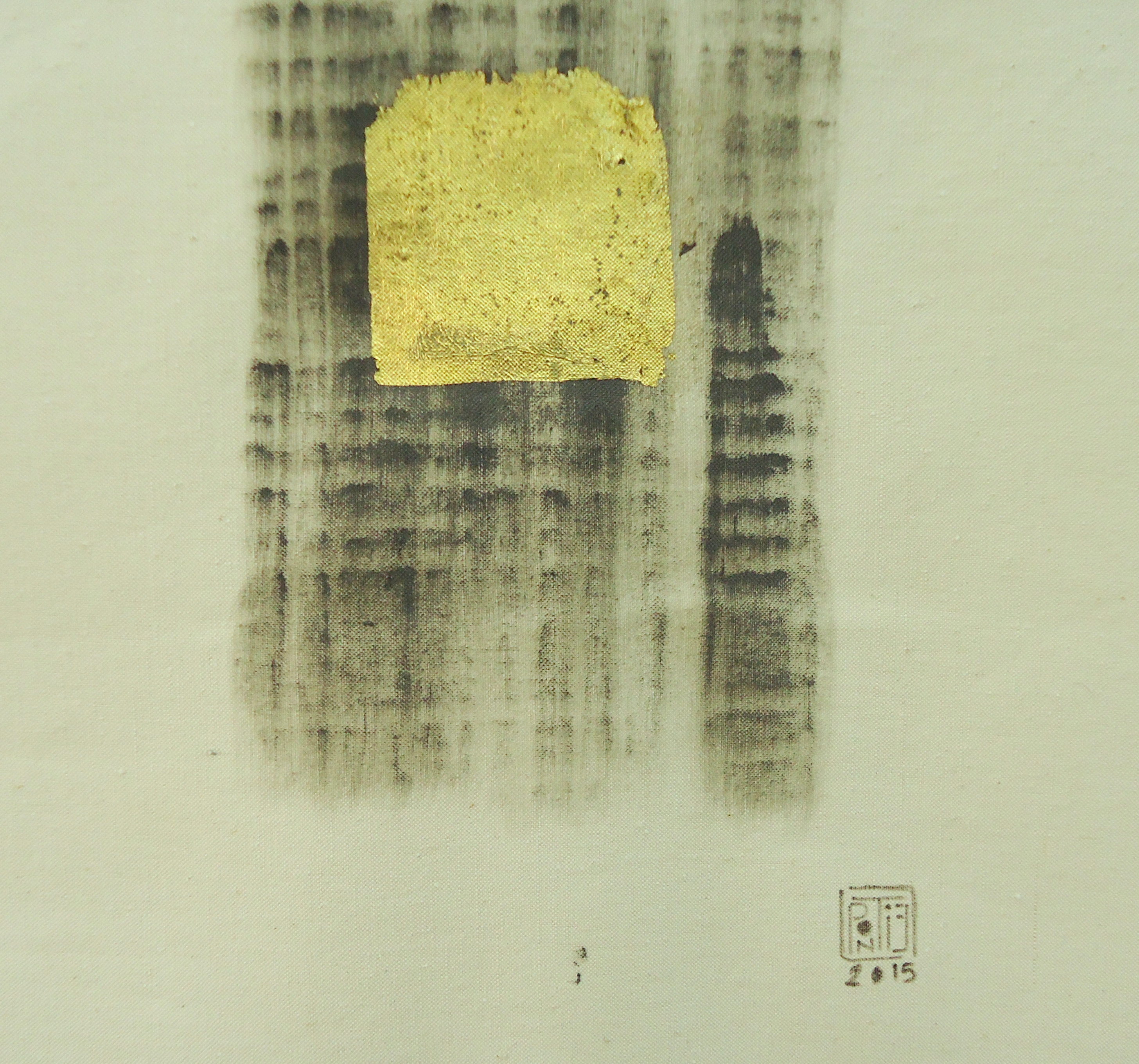 Dans un premier temps, je garde une trace de la planche d’origine sur toile ou sur papier c’est l’empreinte du support que je présente en « kakémono ».