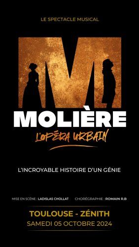 Molière, l’opéra Urbain est un spectacle musical d’un nouveau genre qui réunit sur scène des chanteurs, slammeurs, rappeurs, danseurs, comédiens et musiciens dans des décors et costumes du 17ème siècle.
