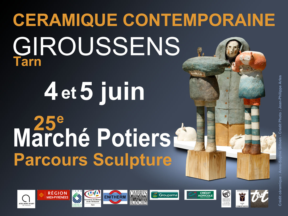 Depuis 25 ans, chaque printemps, le marché de Céramique Contemporaine de Giroussens est un événement fort de la vie du village et un rendez-vous incontournable des passionnés de céramique. Les visiteurs se déplacent non seulement des départements alentours mais de la France entière pour découvrir le travail de céramistes venus de toute l’Europe. 70 exposants sont sélectionnés chaque année de façon à présenter, le temps d’un week-end, une très large palette de la création céramique contemporaine.
