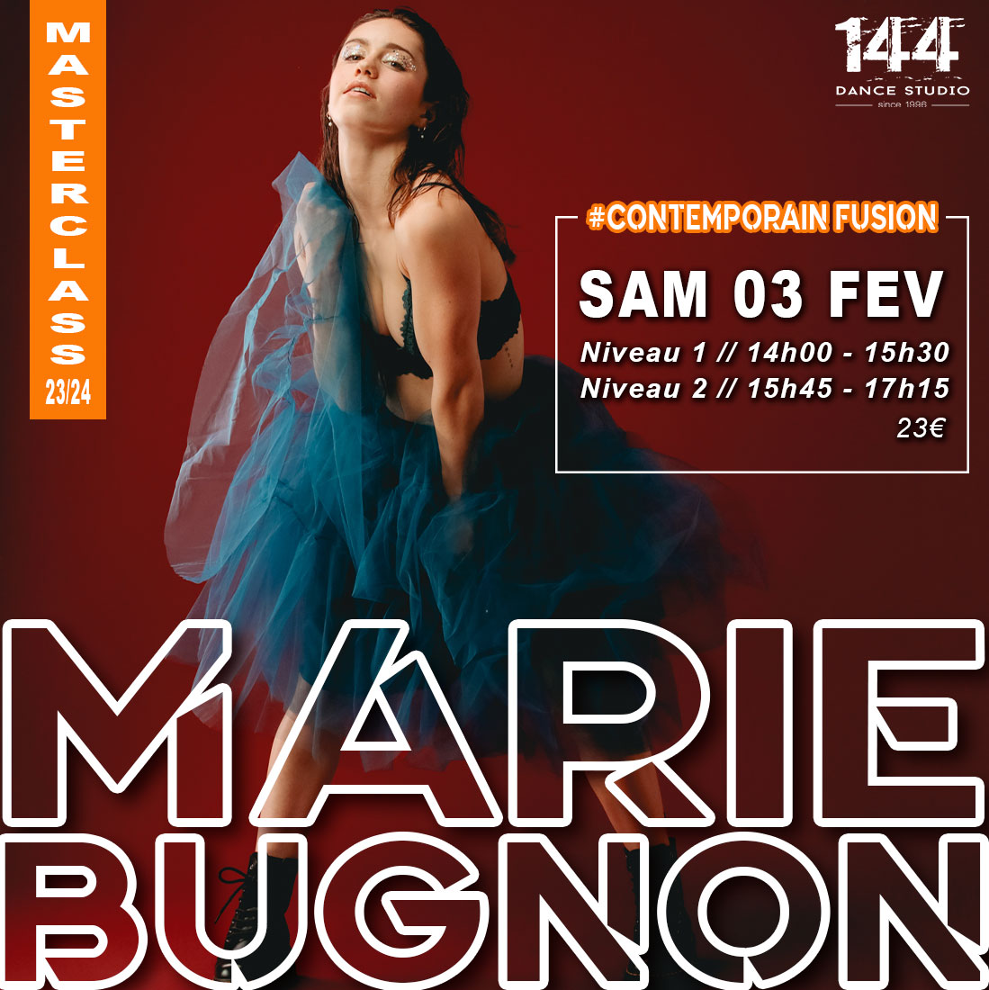 Site web : https://www.144danceavenue.com/evenement/masterclass-contemporain-fusion-avec-marie-bugnon/