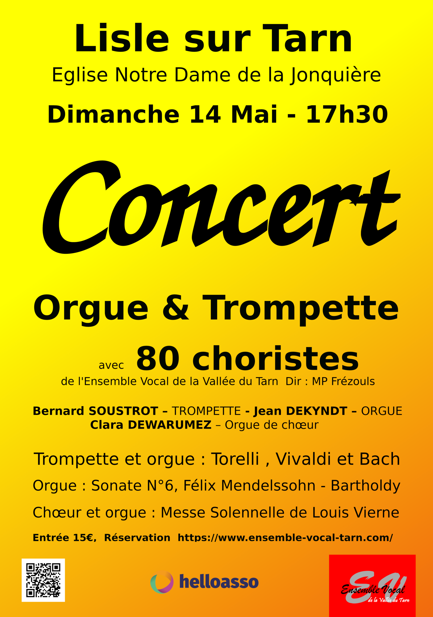 Pour ce dimanche de printemps, ils ont invité l’organiste Jean Dekyndt, titulaire des orgues de la cathédrale Saint-Pierre de Montpellier et de la cathédrale Saint-Nazaire de Béziers, Bernard Soustrot, trompettiste de renommée internationale et Clara Dewarumez, jeune et brillante concertiste de Lisle sur Tarn.