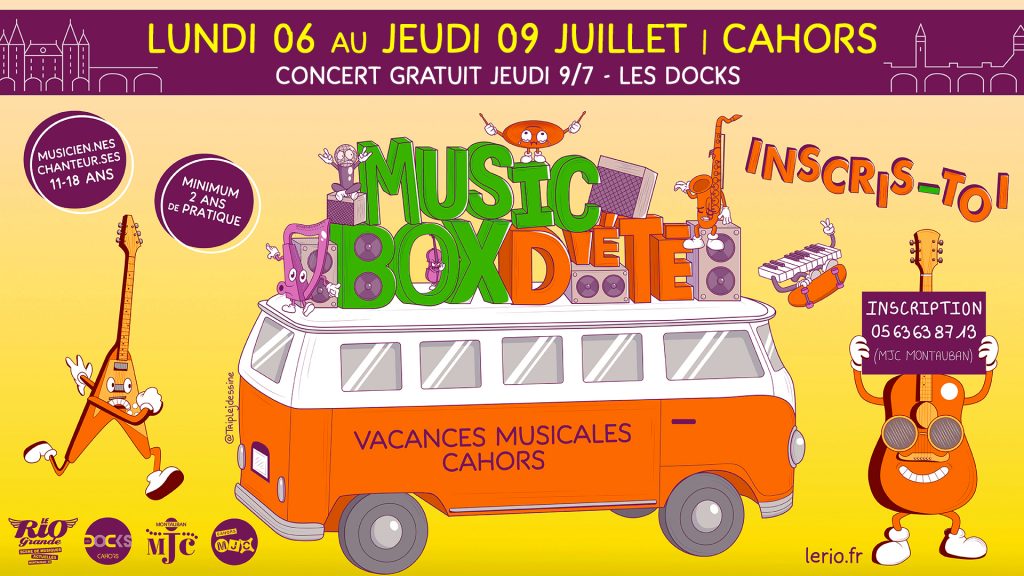 Cet été – LUNDI 6 au JEUDI 9 JUILLET – le MUSIC BOX se déplace à Cahors. Musicien.nes et chanteur.ses de 11/18 ans, préparez vos valises et embarquez pour ce séjour musical de 4 jours !