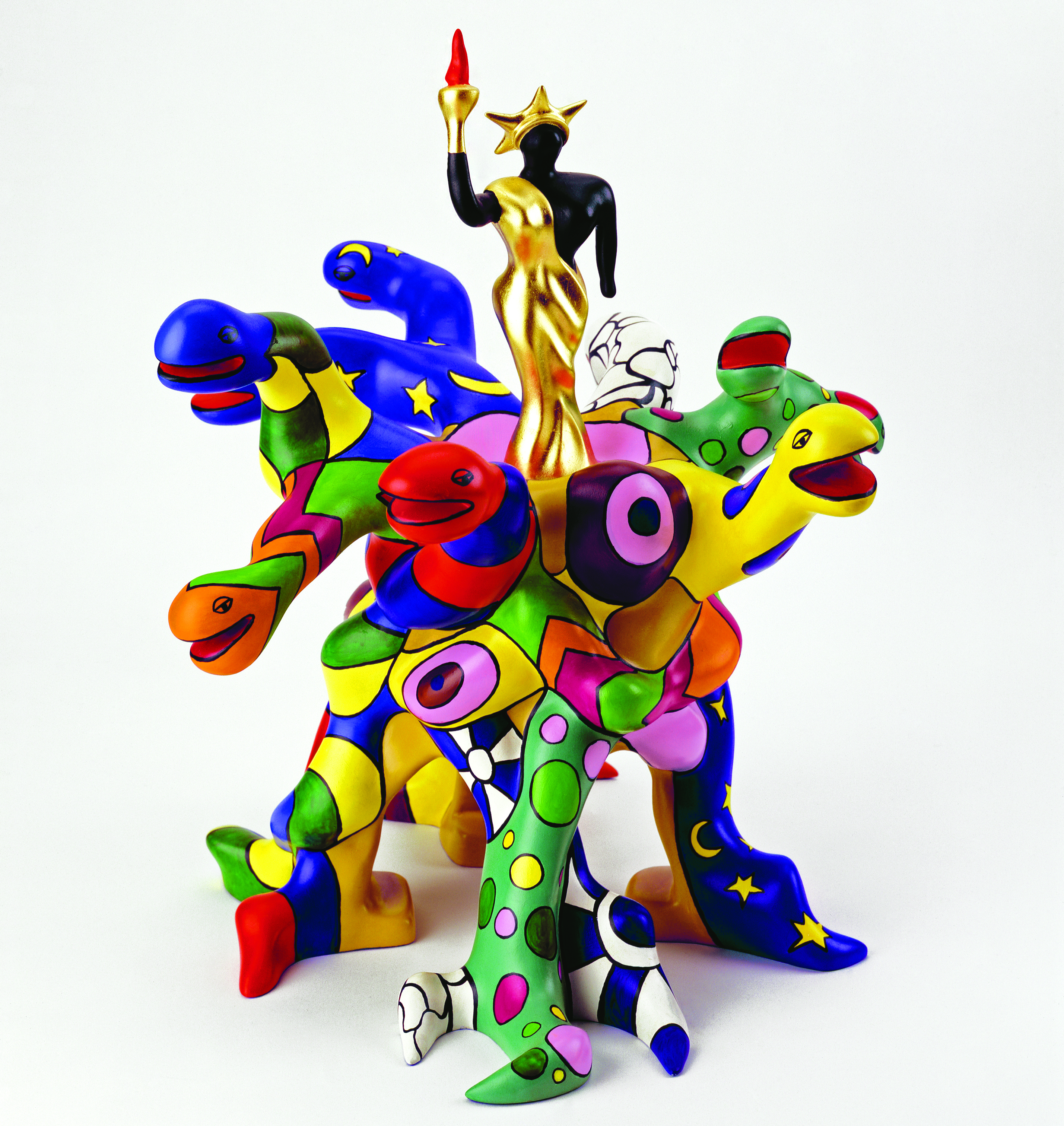 Photo : Niki de Saint Phalle, Tree of Liberty (Queen Califia), 2001, polyester peint, feuille d’or, 48x50x54cm © Niki Charitable Art Foundation