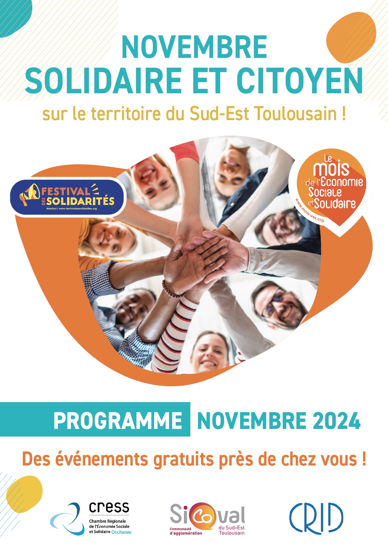 À l’occasion du mois de l’ESS (Économie Sociale et Solidaire) et du Festival des Solidarités qui se déroulent tout au long du mois de novembre partout en France, le Sicoval et les acteurs de l’ESS du territoire se mobilisent pour la solidarité à travers « Novembre Solidaire et Citoyen ».