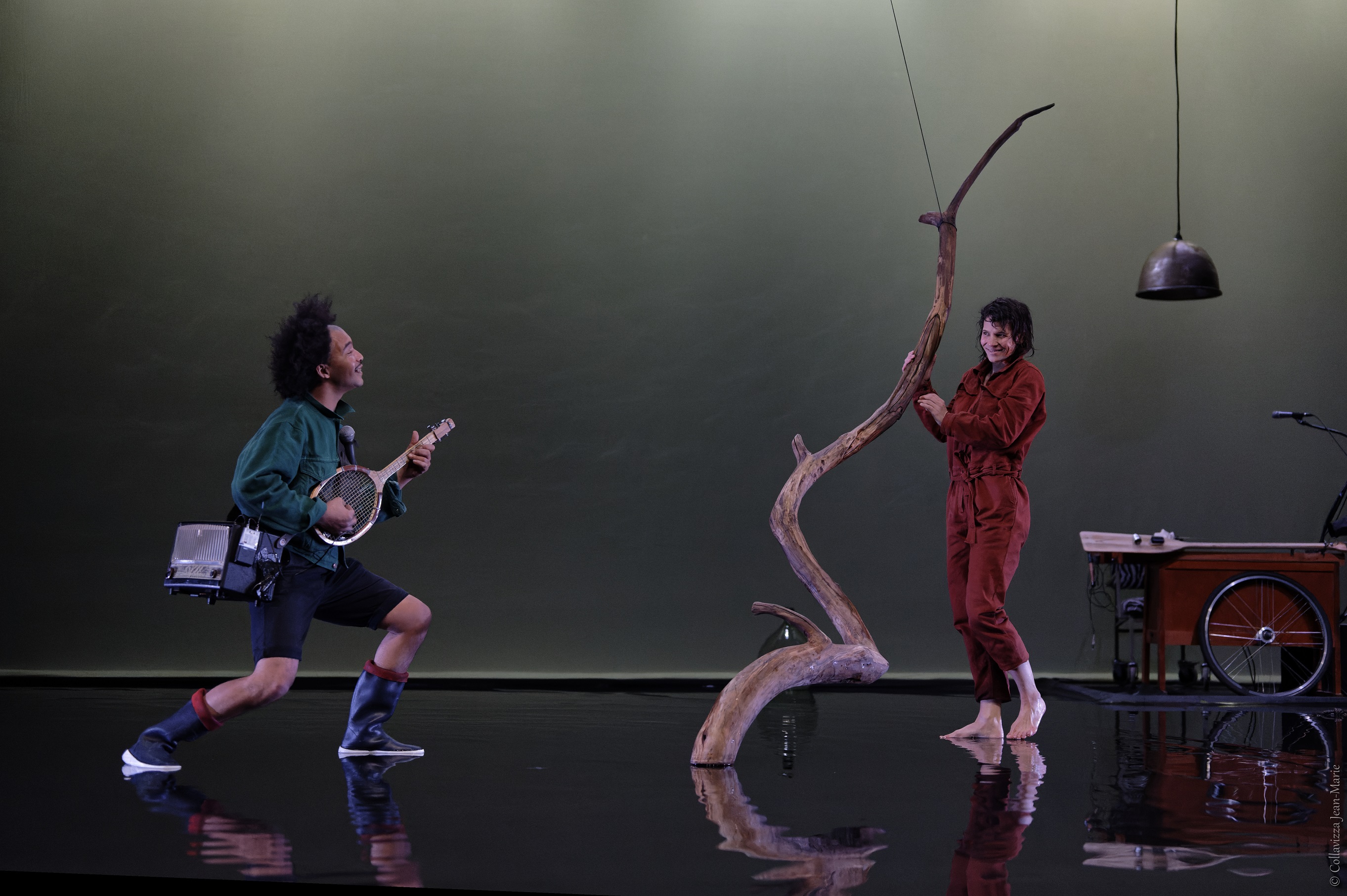 À eux deux, ils réinventent le monde. Elle, la danseuse acrobate Maud Payen, lui, Adil Kaced, musicien découvreur de sons et créateur d’instruments, pour conter l’histoire de deux ados naufragés sur une île déserte. Une grande bouffée de bonheur généreusement partagée.