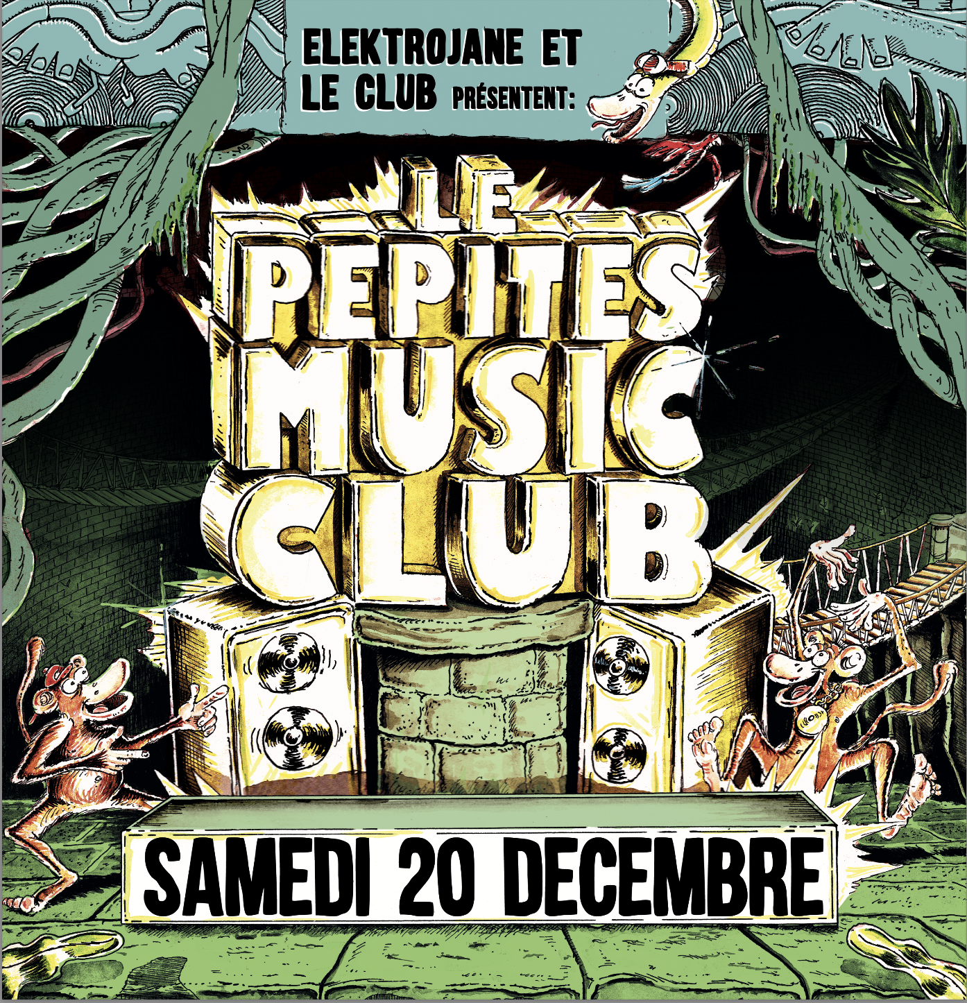 Au programme de la soirée : le Pépites Music Club, un concept qui tient l’bambou ! Le collectif Elektro Jane vient junglifier le Club pour la soirée de clôture du festival NovAdo. Avec des influences musicales multiples, les DJ et DJane vous concoctent un mix bien assaisonné de 20h à 1h. Déguisement pour toutes et tous et autres surprises à volonté pour cette soirée immersive dans cette forêt illuminée !