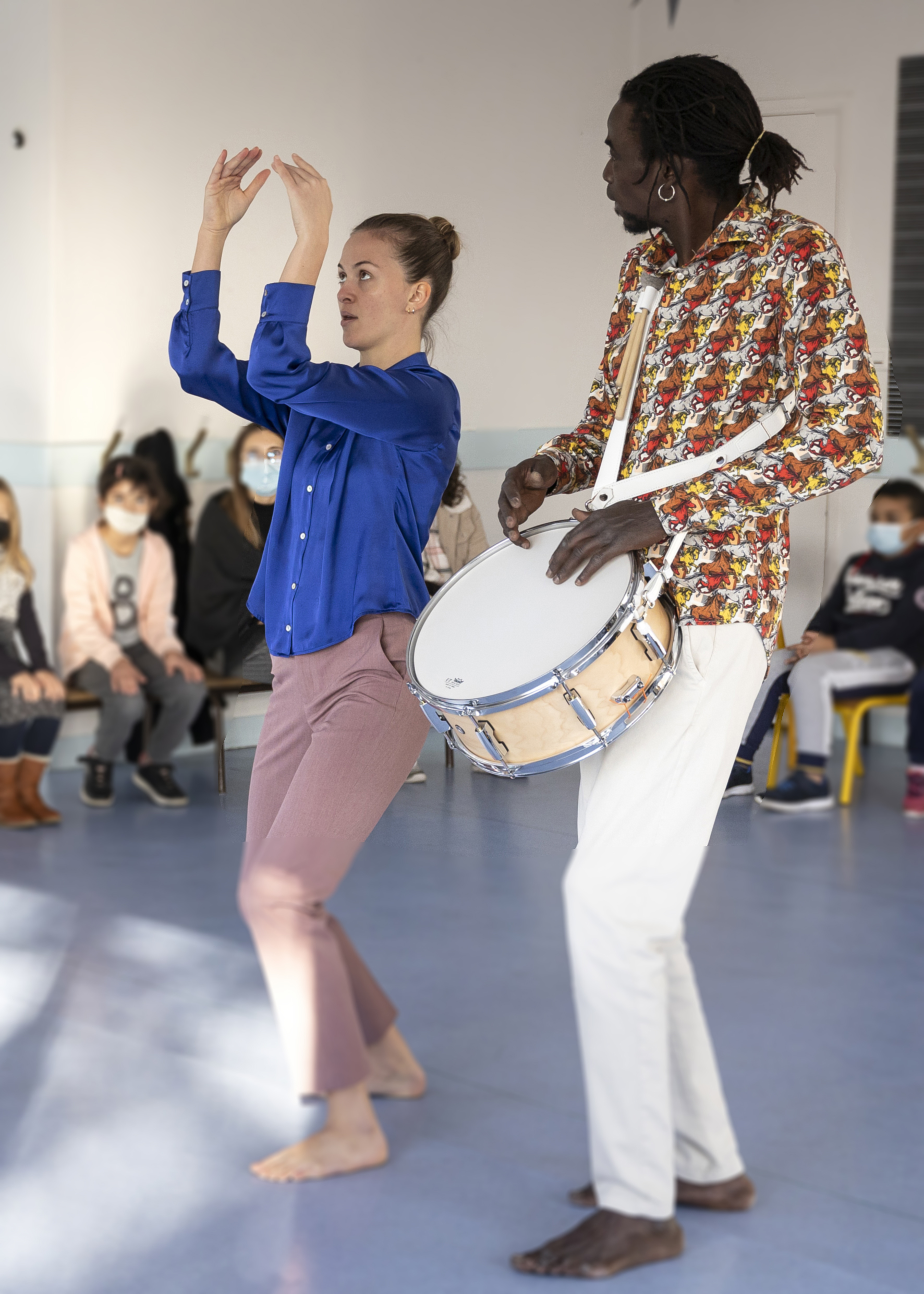 Sur les rythmes d’un tambour, une danseuse met en mouvement le poème dans un dialogue sensible entre les mots et les gestes. Une pièce participative qui place les adultes et les enfants au cœur du mouvement, du rythme et des mots. Un message d’espoir, de liberté, d’égalité et de fraternité.