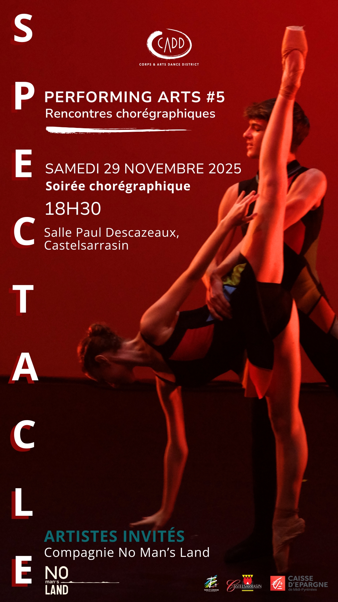 Le samedi 29 novembre au soir, cAdd ouvre ses portes pour une soirée chorégraphique où se produiront des talents venus des quatre coins de la France. Cette représentation met en lumière des écoles, des compagnies et des artistes de tous âges et disciplines, comme la Corps Et Arts Dance Company (CADC) ou le VM Ballet (prestigieuse école de danse classique), afi n de proposer un spectacle aux univers multiformes et variés. Nous aurons le plaisir d’accueillir la Compagnie No Man’s Land, une compagnie professionnelle franco-tunisienne-équatorienne qui dansera son duo Me fui con tu nombre, une pièce où les corps se font voix, et portent en eux le chemin de deux continents, entrelaçant les récits d’émancipation réduits au silence. La promesse d’une soirée éclectique, offrant une immersion dans la richesse et la diversité des pratiques chorégraphiques. La soirée est ouverte à toutes et à tous, avec une participation libre à partir de 5€.