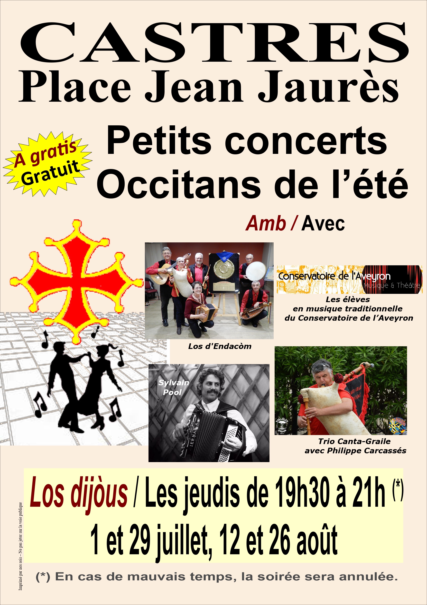 Vous pouvez noter les autres dates des concerts occitans de l’été à Albi et Castres sur vos agendas :