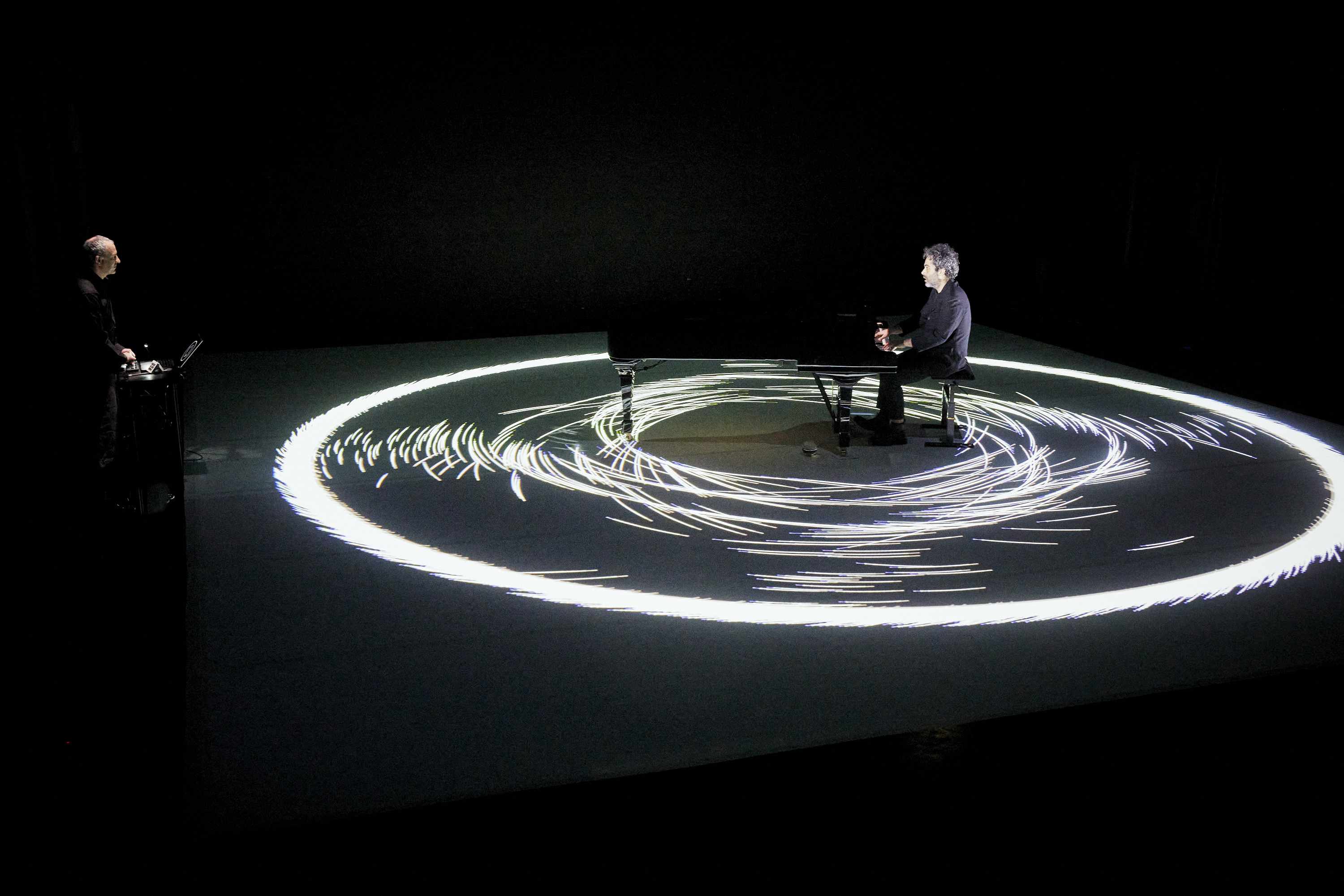 D’un côté, le chanteur, compositeur et pianiste babx, électron libre de la scène française. De l’autre côté, l’artiste pluridisciplinaire Adrien Mondot, moitié masculine du très créatif binôme Adrien M & Claire B.