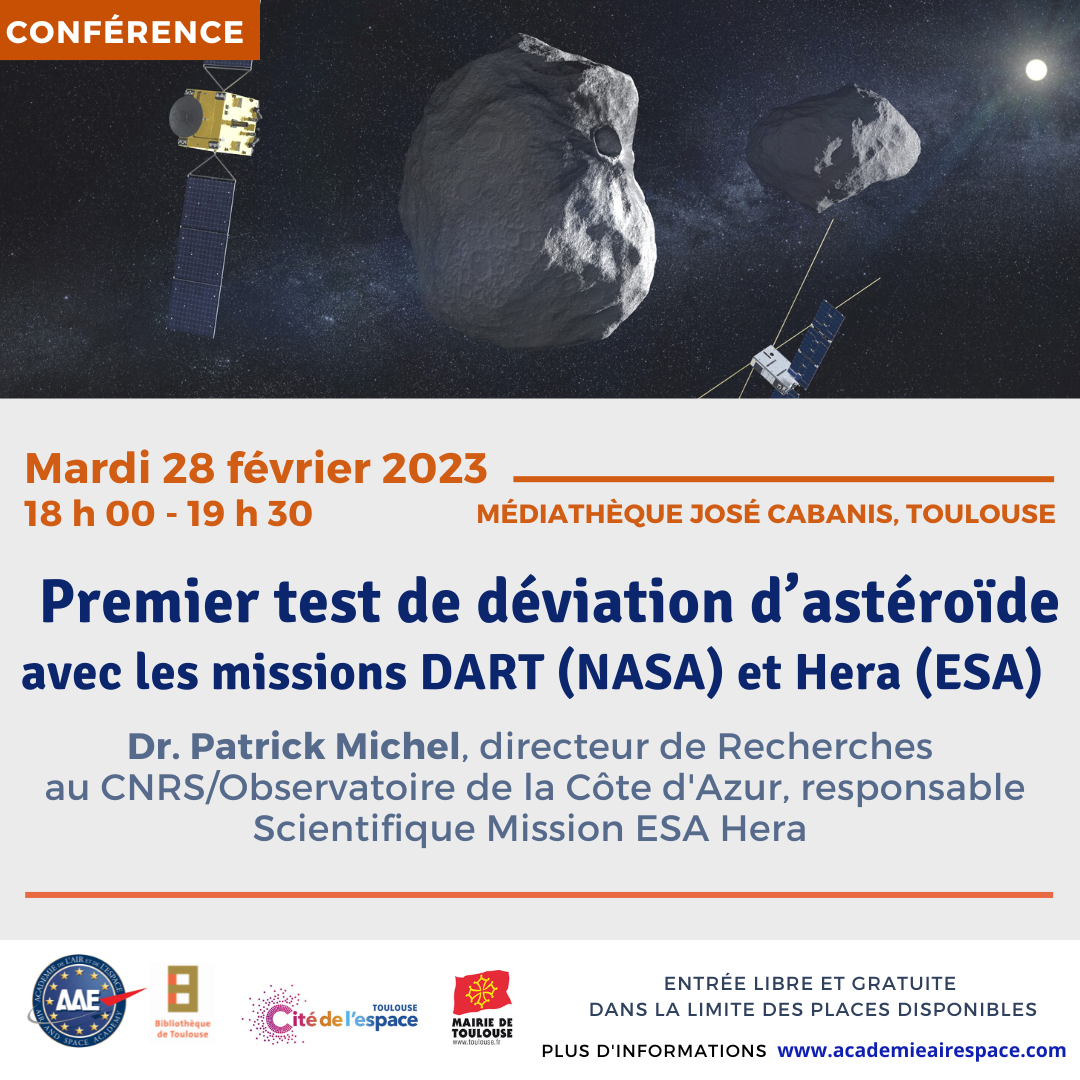 [ #conférence ] 🚀🛰️ "Premier test de déviation d’astéroïde avec les missions DART (NASA) et Hera (ESA)" présentée par Dr. Patrick Michel, directeur de Recherches au CNRS - Centre national de la recherche scientifique/Observatoire de la Côte d’Azur, responsable scientifique Mission ESA Hera
