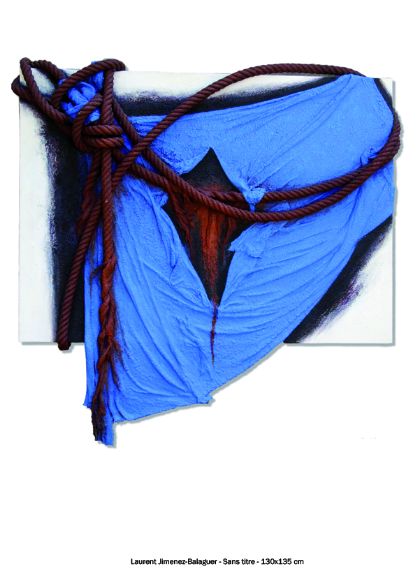 Hommage à Laurent Jimenez Balaguer, peintre humaniste Catalan qui utilise tissus, cordes et morceaux de bois comme éléments de langage.