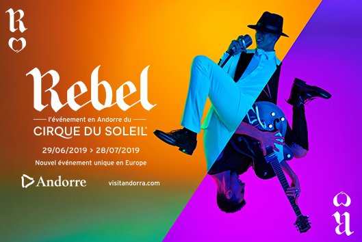 Après le succès de SCALADA en 2017 et de DIVA en 2018, le Cirque du Soleil a tenu à rendre hommage aux plus grandes voix masculines que la chanson ait connues au cours des dernières décennies. REBEL, dirigé par Lydia Bouchard, est un hommage à la musique, aux chansons à jamais ancrées dans la mémoire collective et à l’esprit du rock. REBEL sera présenté tous les soirs du mardi au samedi ainsi que le dimanche 28 juillet sous un chapiteau prévu pour l’occasion en plein coeur d’Andorre-la-Vieille. Toutes les représentations dureront 1 heure et débuteront à 22 heures.