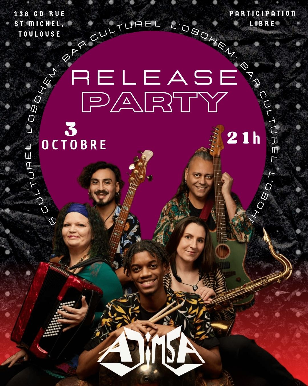 Arrivé récemment à Toulouse depuis le Chili, Ajima célèbre la sortie de son nouvel EP Rayün avec une soirée le vendredi 3 octobre à 21h au bar culturel L’Ôbohem (138 Grand-Rue Saint-Michel, Toulouse – métro Palais de Justice). Un moment convivial et engagé pour découvrir l’univers du groupe.