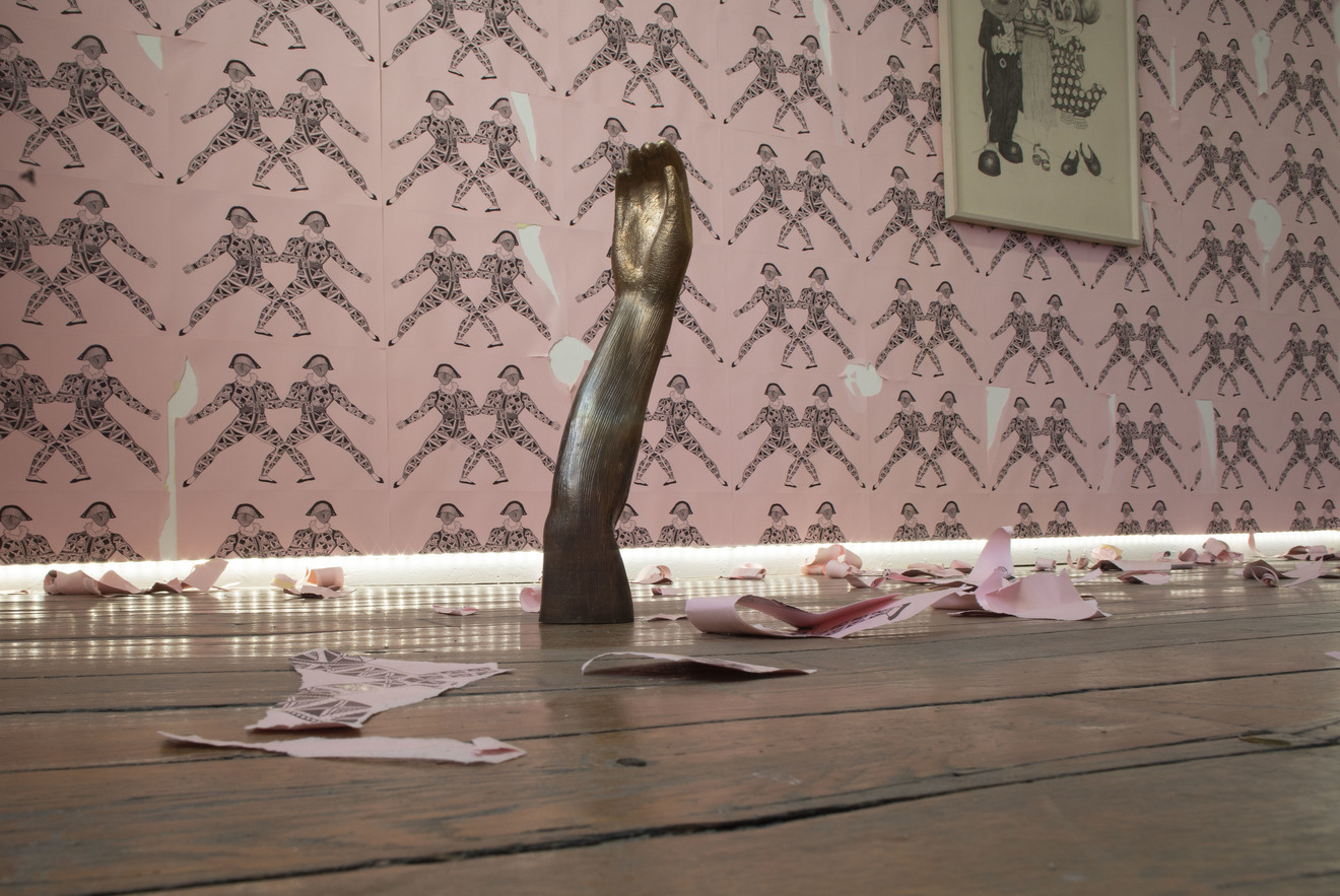 Grandiloquent, halluciné, grotesque, multiple, fragmentaire… Nombreux sont les adjectifs employés pour tenter de qualifier le travail de Romuald Jandolo. De son enfance passée à arpenter les routes de France et de Navarre avec sa « grande famille du cirque », il a gardé cet attrait pour le spectaculaire, le flamboyant. Faisant fi de la dichotomie entre un art noble et un art populaire, Romuald Jandolo mêle les techniques, les références et les traditions pour développer un corpus d’œuvres hétérogène, protéiforme, décloisonné, mais d’une grande force plastique et symbolique.