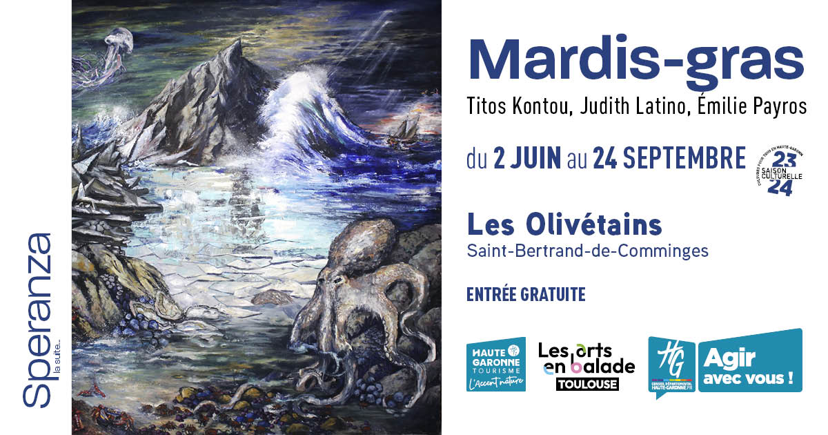 Mardis-gras est un trio d’artistes Titos Kontou, Judith Latino et Emilie Payros installés à Toulouse. Ils se sont rencontrés, en 2020, lors de l’exposition "Un nouvel éden ?" organisée à La galerie 3.1 en partenariat avec Les Arts en balade.