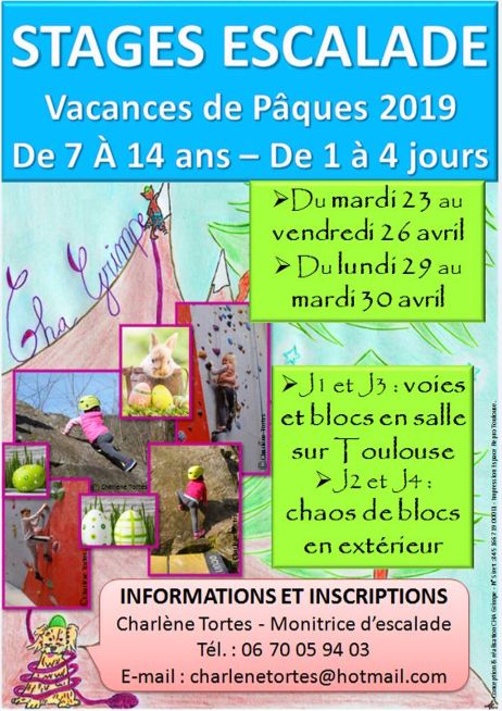 STAGE D'ESCALADE - VACANCES DE PÂQUES 2019 - De 7 à 14 ans - 2 jours